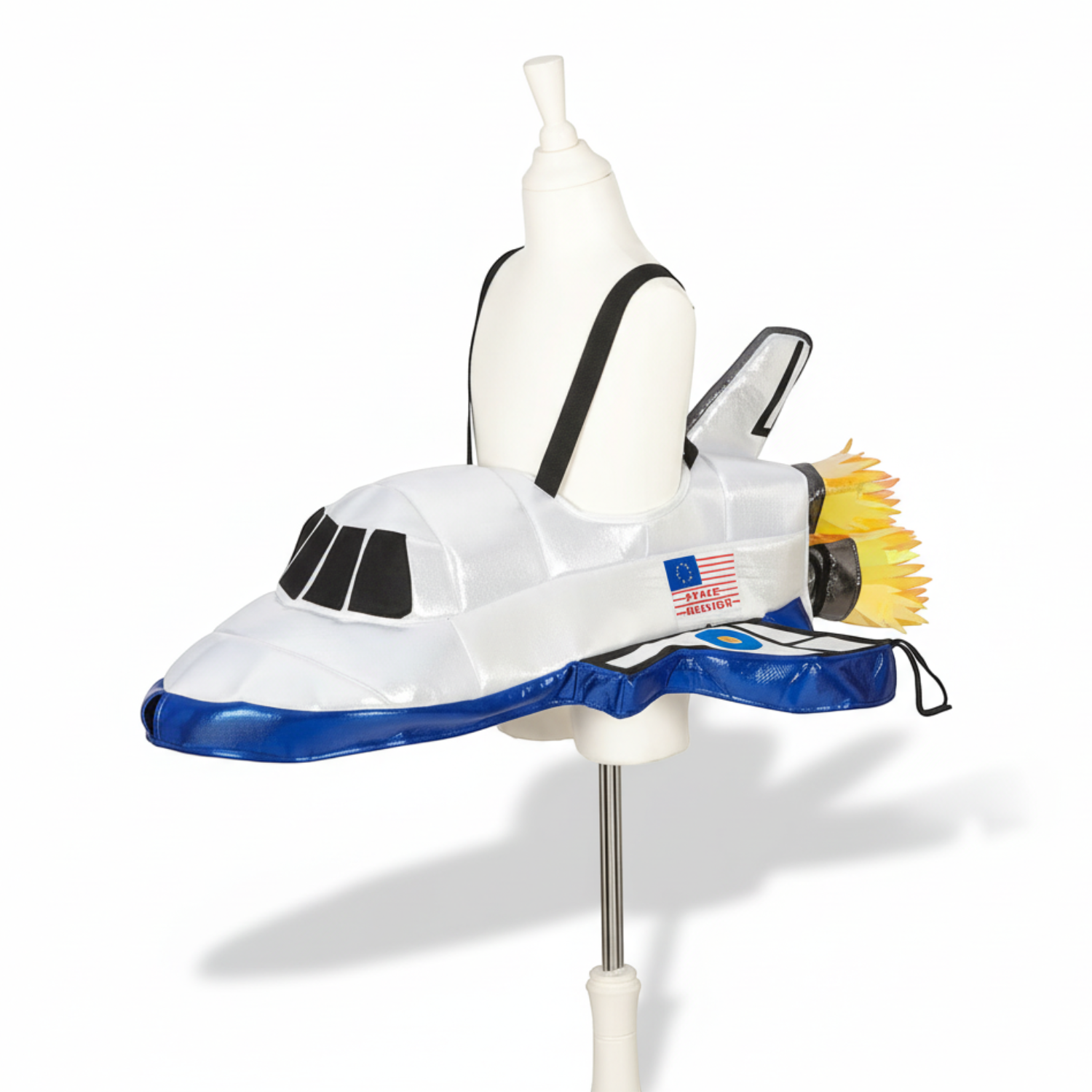 To niezwykle efektowne przebranie typu ride-on, które z pewnością przyciągnie uwagę. Duża, trójwymiarowa rakieta w srebrno-niebieskich kolorach ma wydłużony dziób, boczne skrzydła i płomienie imitujące pracujące silniki z tyłu. Dzięki szerokim szelkom i dużemu otworowi strój jest lekki, wygodny i łatwy do samodzielnego założenia. Może pełnić rolę niezależnego kostiumu lub stanowić doskonałe uzupełnienie stroju astronauty. Idealny na bal przebierańców, szkolne przedstawienie, a nawet sylwestrową zabawę. Świetnie sprawdzi się także jako oryginalny prezent.
