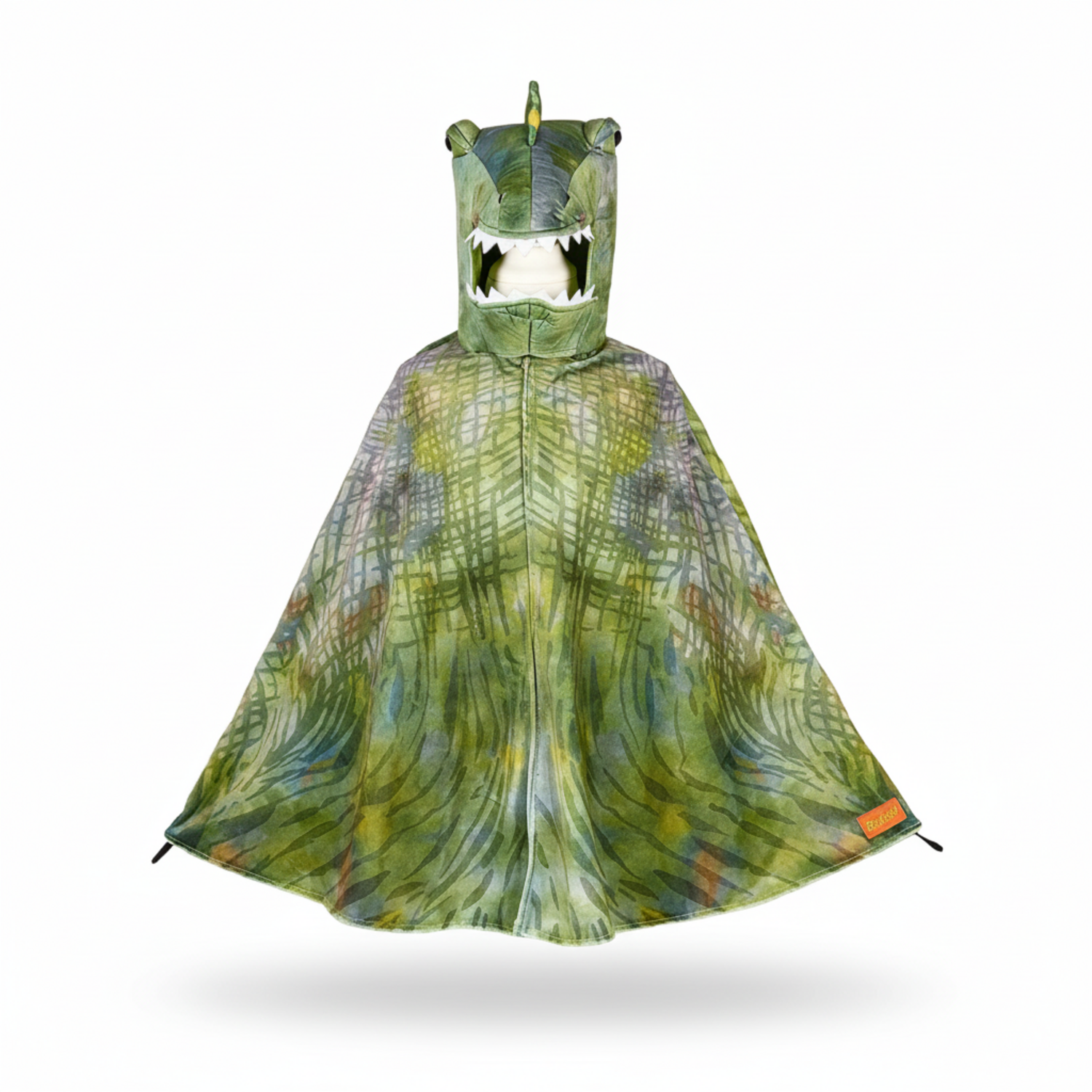 Kostium peleryna zielony T-rex z dużym zabudowanym kapturem, tworzącym jednocześnie maskę dinozaura holenderskiej marki Souza!