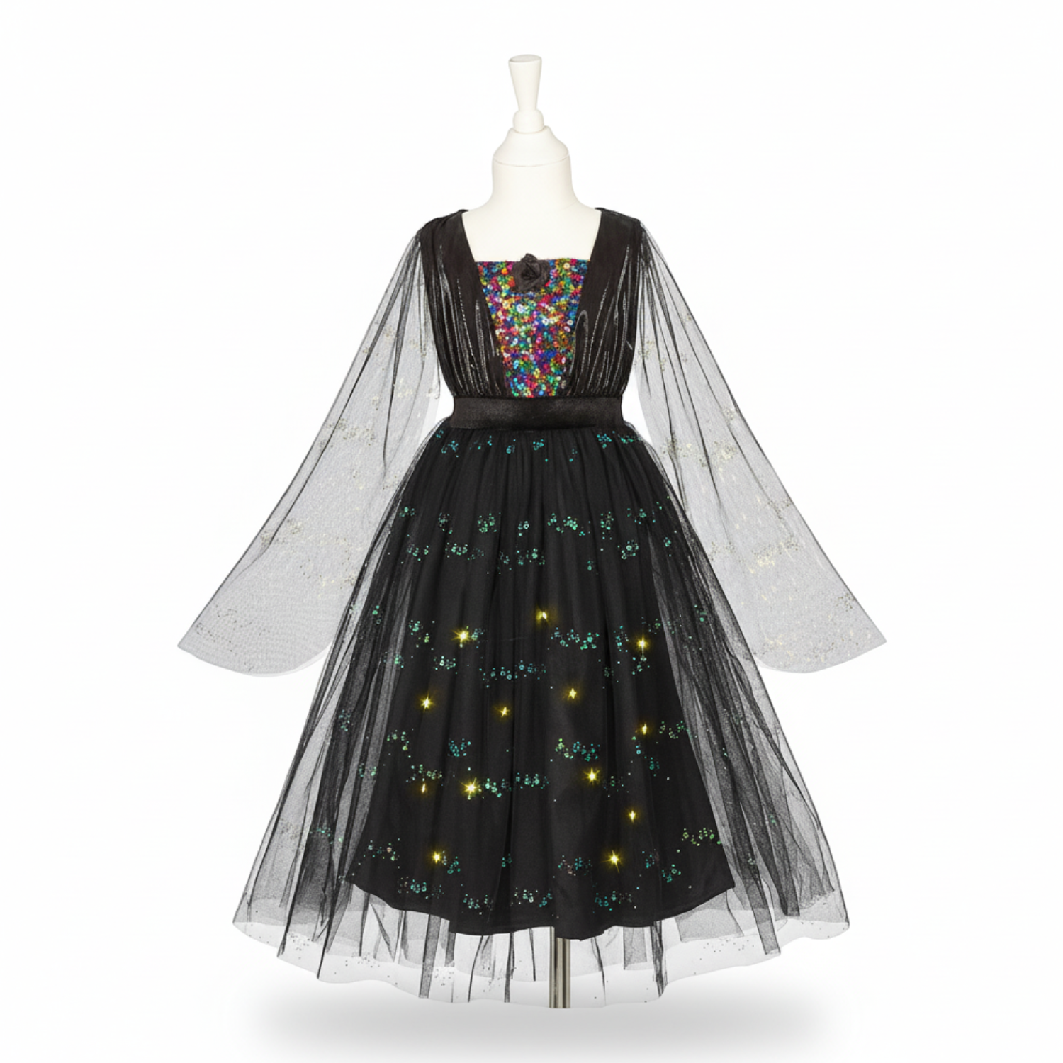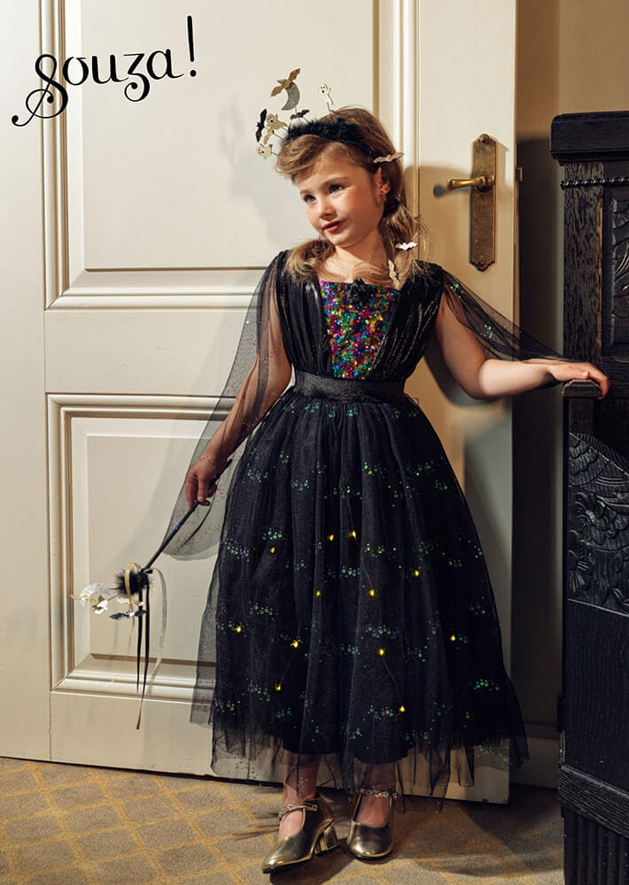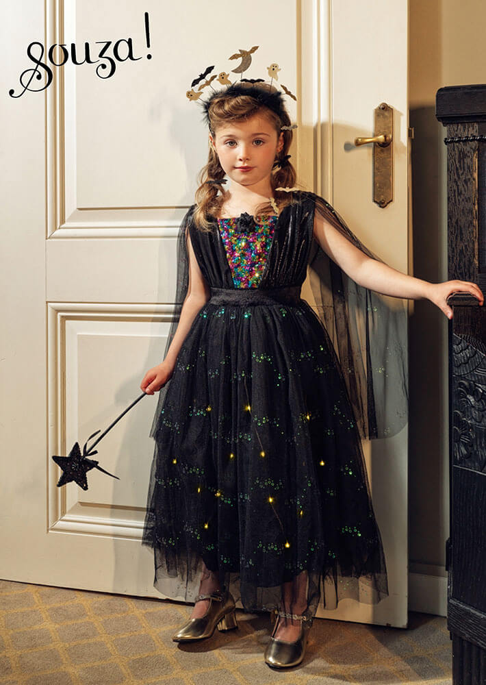 Kostium sukienka tiulowa z cekinami i lampkami LED czarownica Agatha
