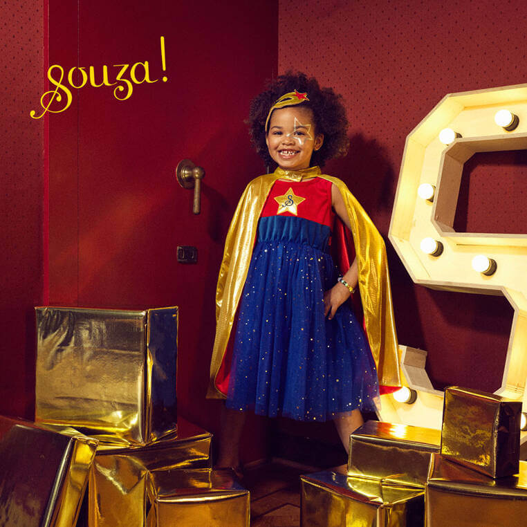 Souza! to holenderska marka, oferująca przebrania i szeroki wybór akcesoriów dla dzieci. Sukienki wizytowe, kostiumy, pantofelki, peleryny, skrzydła, tiary, biżuteria, maski, korony, kapelusze, tarcze, torebki, różdżki, spinki i kosmetyki tworzą wyjątkowe radosne kolekcje. W Souza! wszystko kręci się wokół fantazji i wyjątkowego designu, nieustannie inspirowanego nieskończonymi możliwościami, jakie daje łączenie materiałów i kolorów. Wysokiej jakości tiulowe sukienki, kostiumy czy pantofelki to propozycje nie tylko na karnawał, ale również do noszenia na co dzień przez cały rok, czy przy okazji różnych uroczystości. Całości dopełniają w pełni bezpieczne, nieuczulające, wegańskie kosmetyki dla dzieci i bogata oferta ozdób do włosów, tak lubianych przez małe dziewczynki!