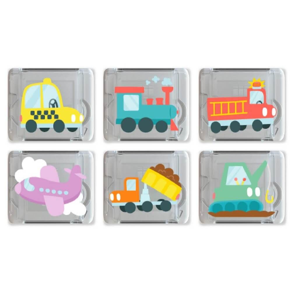 Wyrusz w kolorową, pełną świateł przygodę po świecie pojazdów! Każda kostka w tym zestawie zdobi urocza ilustracja autka – od wesołej taksówki, przez pędzący pociąg, aż po straż pożarną, samolot, wywrotkę i koparkę. To idealna propozycja dla małych miłośników motoryzacji i kreatywnej zabawy.