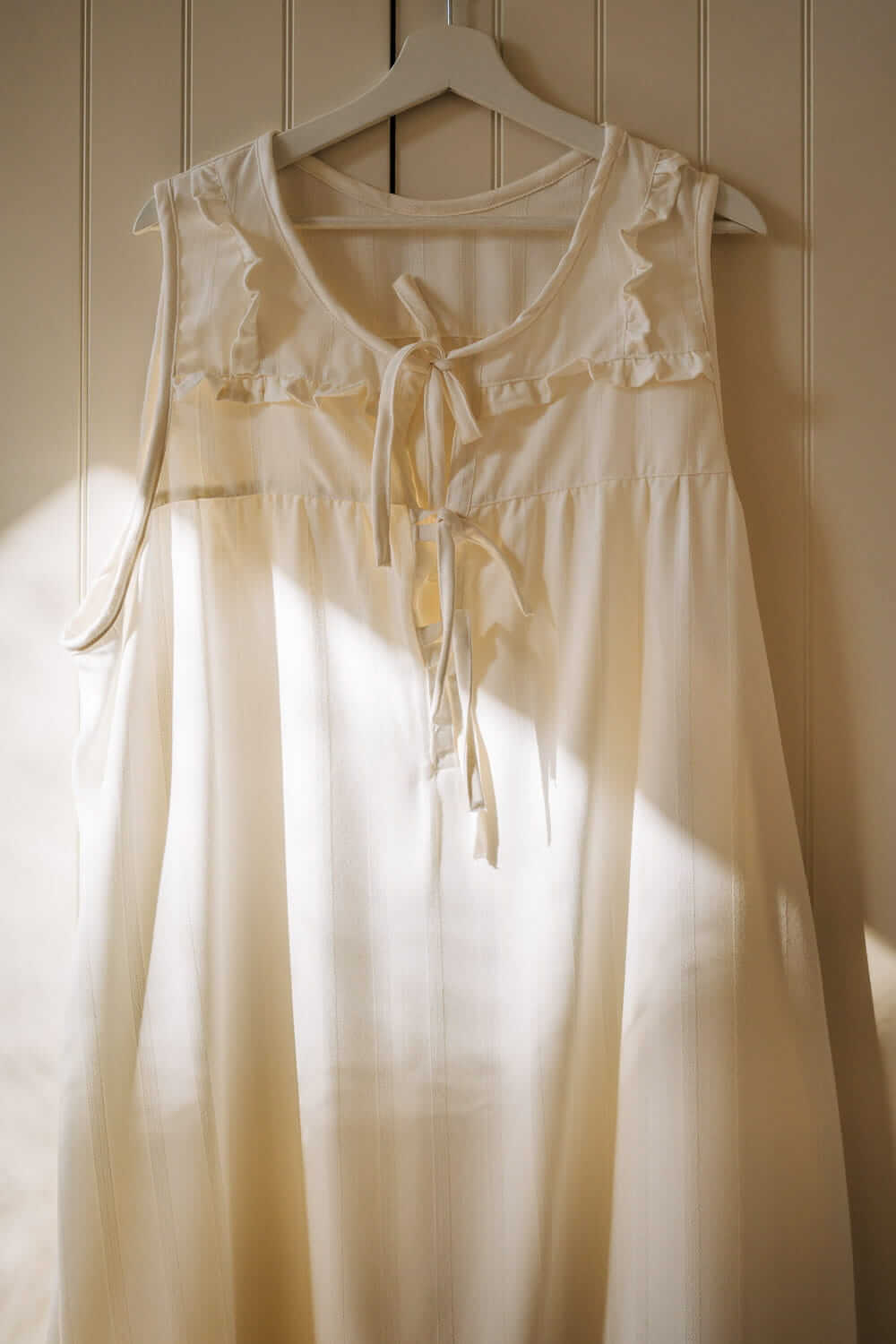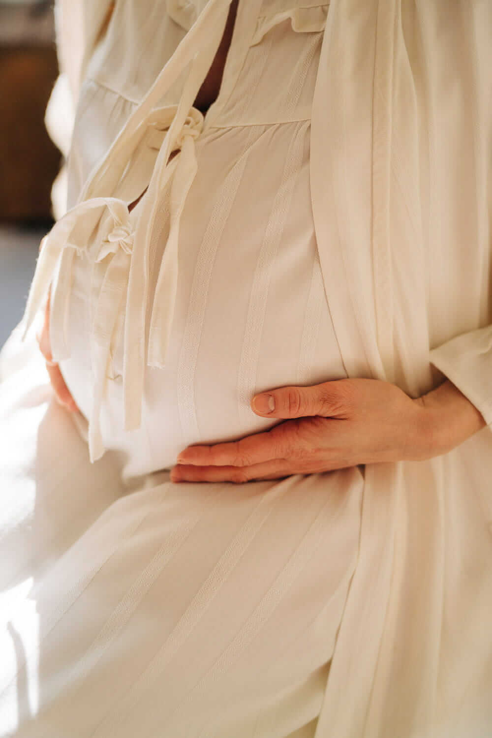 Uszyta z oddychającej tkaniny bambusowej o delikatnej, pionowej strukturze, która jest przyjemna dla skóry i zapewnia komfort o każdej porze nocy. To koszula, która łączy wygodę z subtelną, romantyczną estetyką – na czas oczekiwania i pierwsze wspólne chwile z dzieckiem.