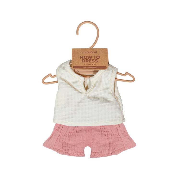 Ubierz swoją lalkę Miniland w uroczy zestaw, idealny na letnie dni