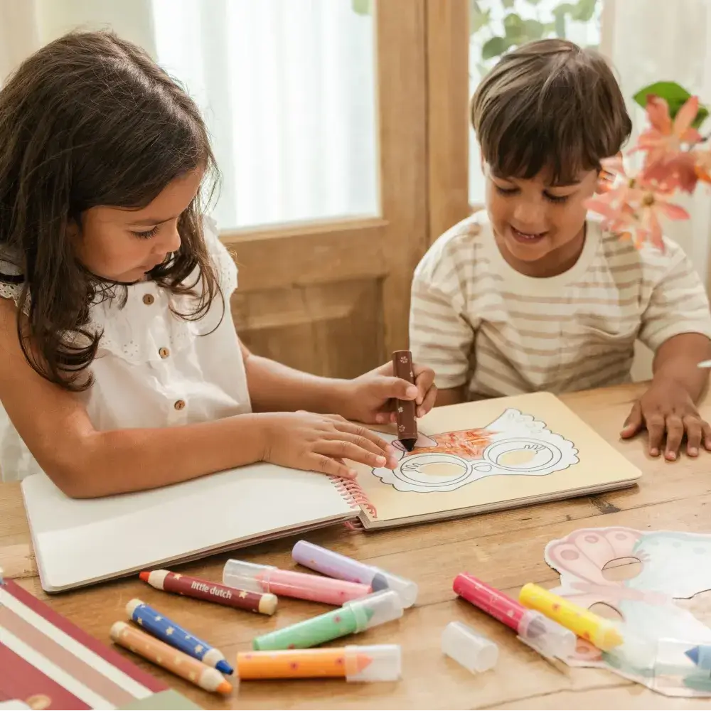 W środku znajdziesz 20 kolorowych masek do wycinania oraz bezpieczne nożyczki, idealne dla małych rączek. Dziecko może samodzielnie tworzyć swoje maski, ozdabiać je i odgrywać zabawne scenki z ulubionymi bohaterami Little Dutch.