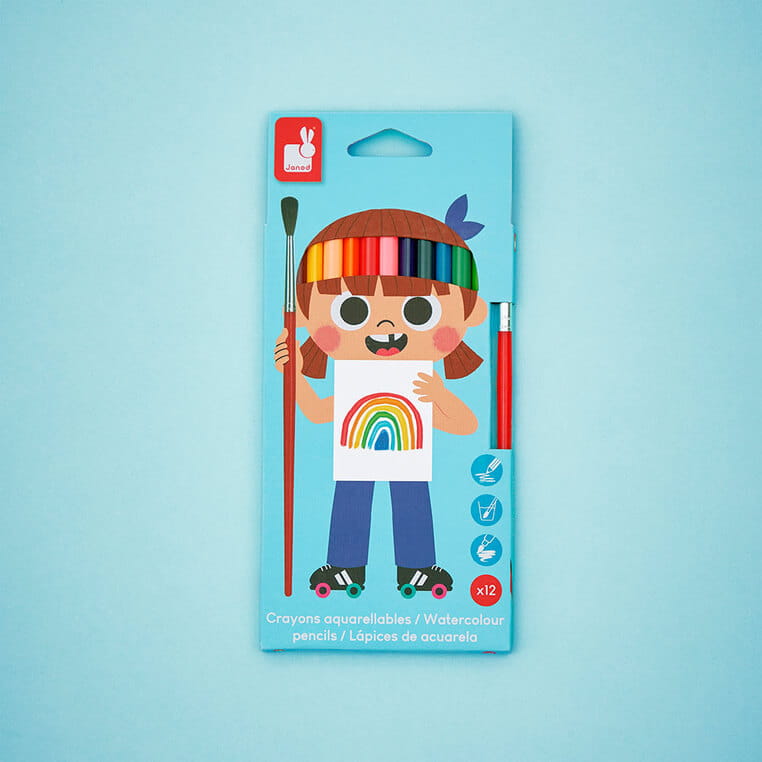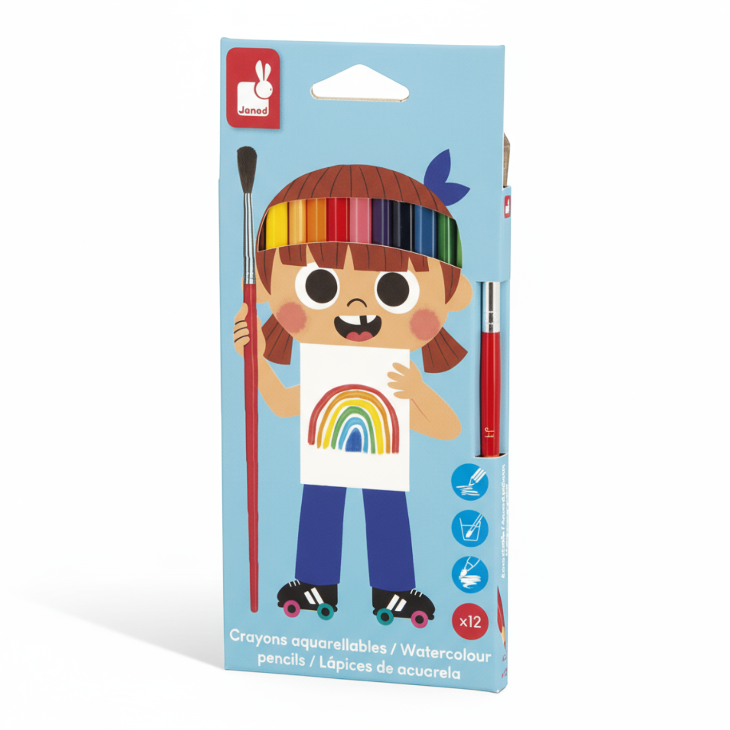 Kredki akwarelowe z pędzelkiem 12 kolorów 3+