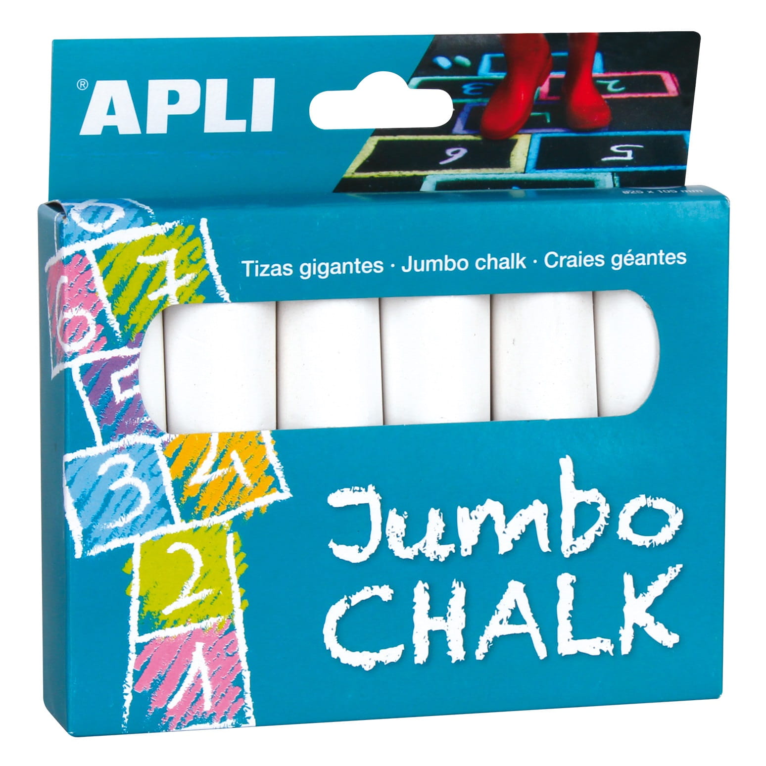 Zestaw zawiera 6 sztuk białych kred dużego rozmiaru, które idealnie sprawdzą się do rysowania po chodniku