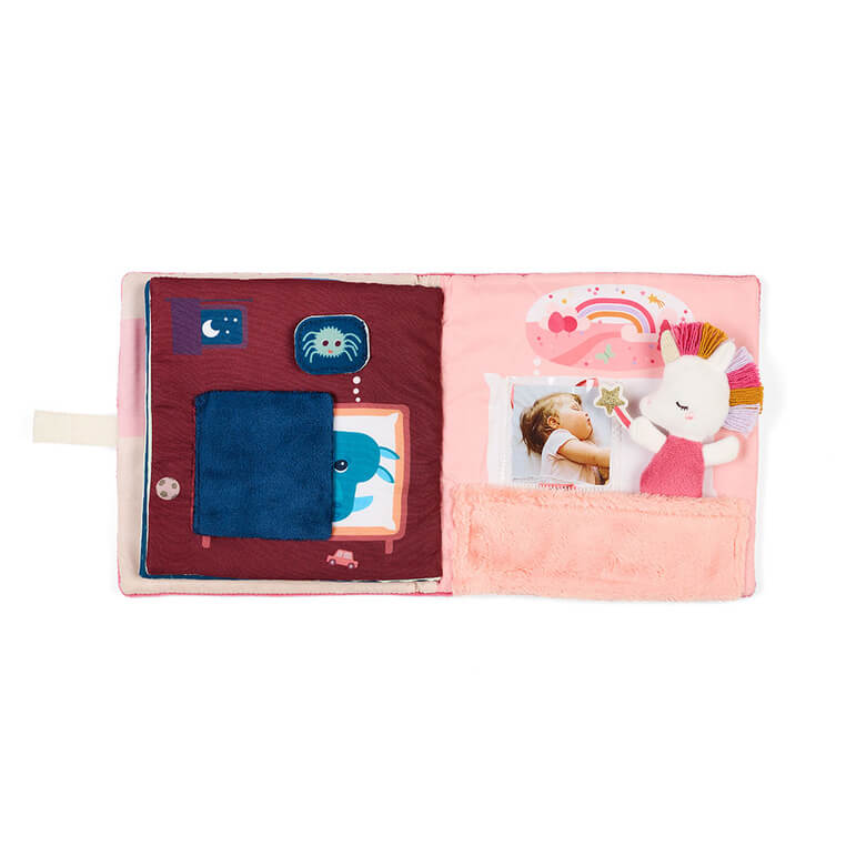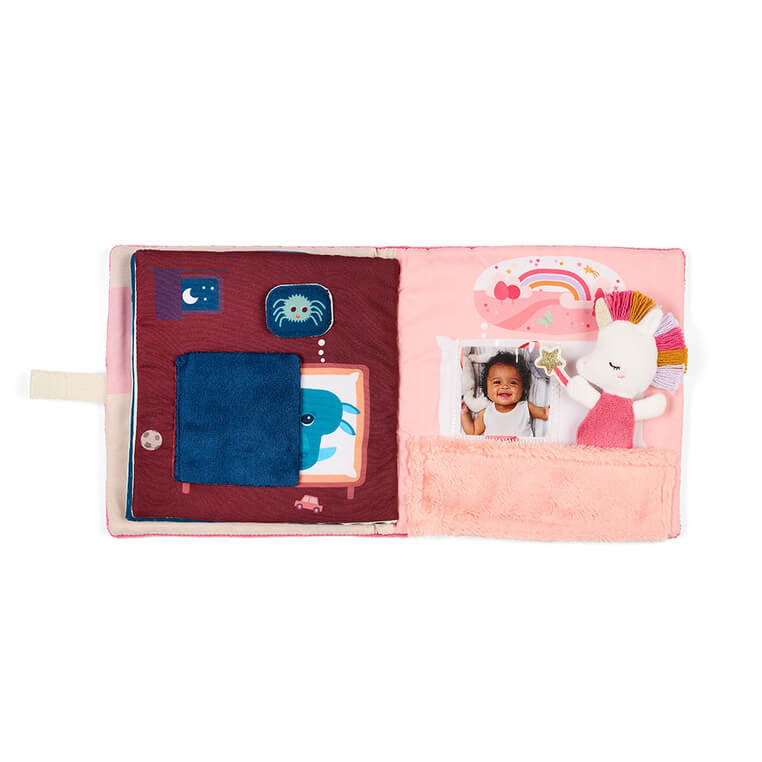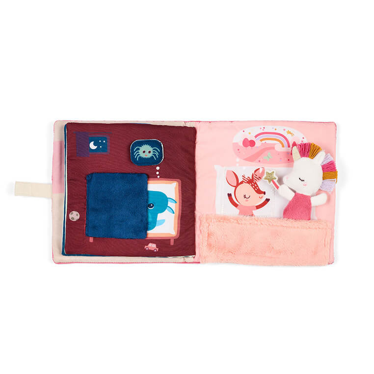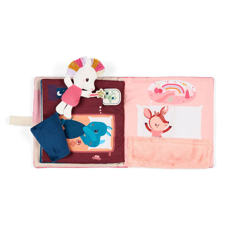 Książeczka z mini przytulanką z kolekcji Jednorożec Lena belgijskiej marki Lilliputiens