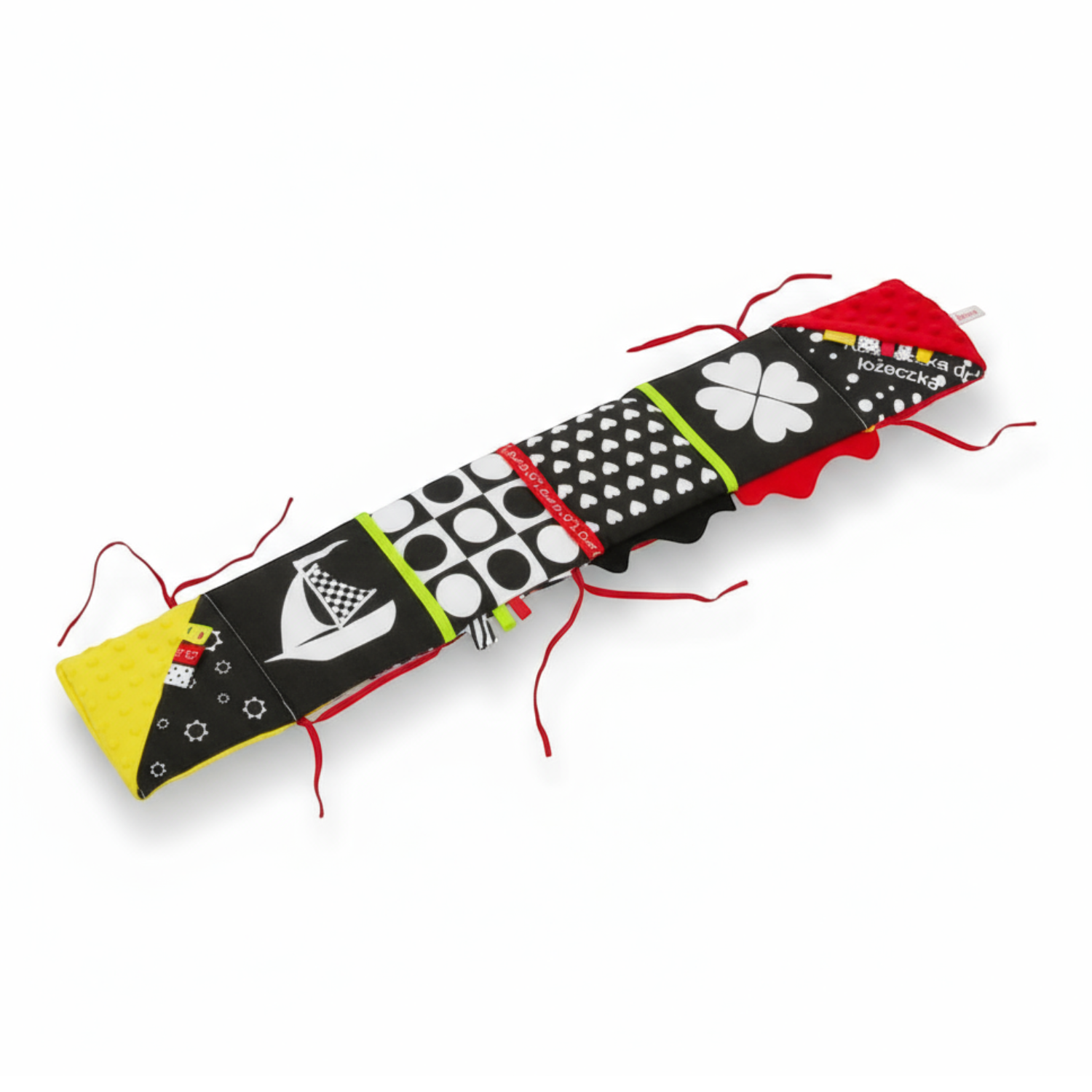 Mięciutka, materiałowa książeczka sensoryczna do łóżeczka, stworzona z myślą o najmłodszych