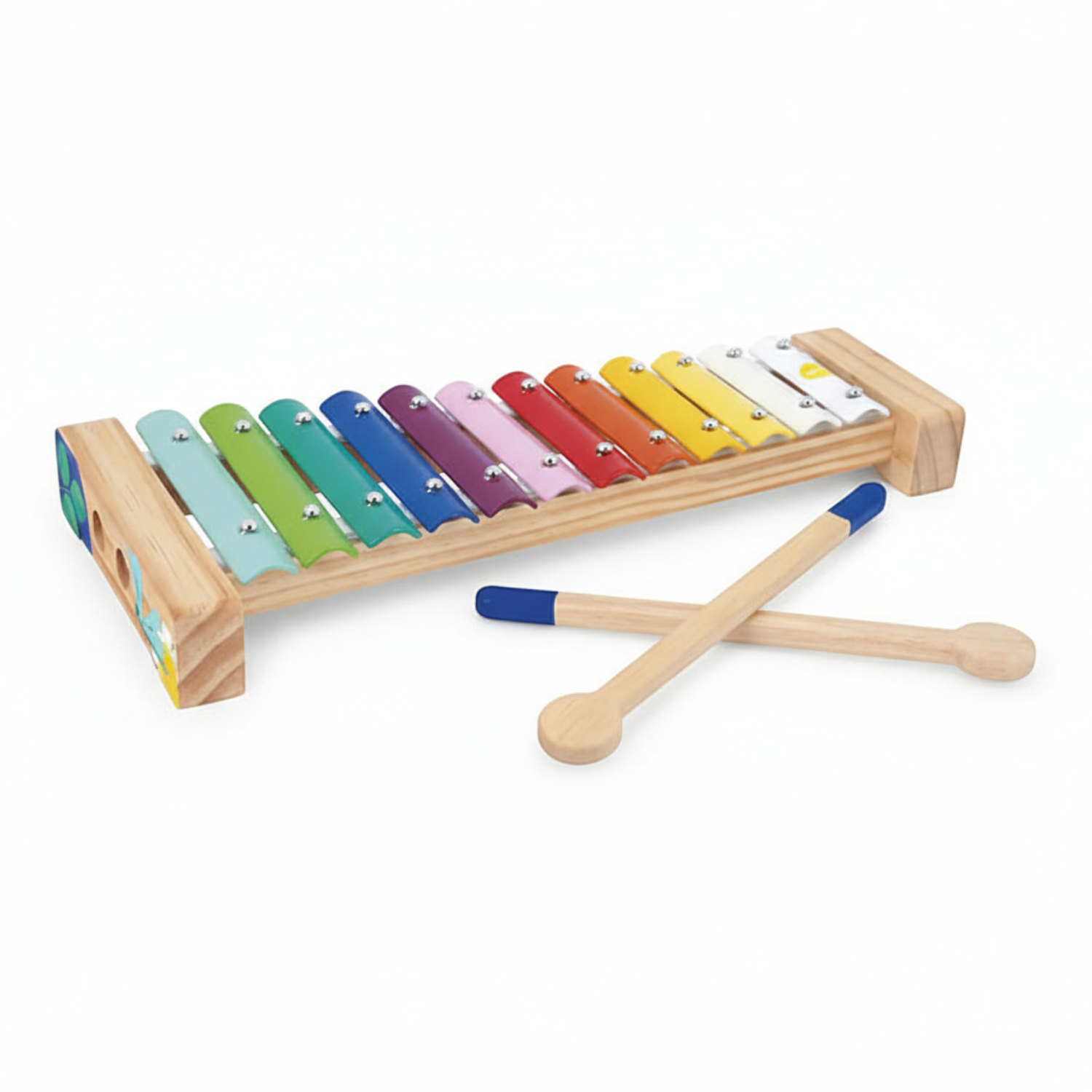 Drewniane cymbałki z serii Gioia francuskiej marki JANOD to idealna pierwsza zabawka muzyczna dla dziecka, która pomaga rozwijać słuch, poczucie rytmu oraz zdolności muzyczne
