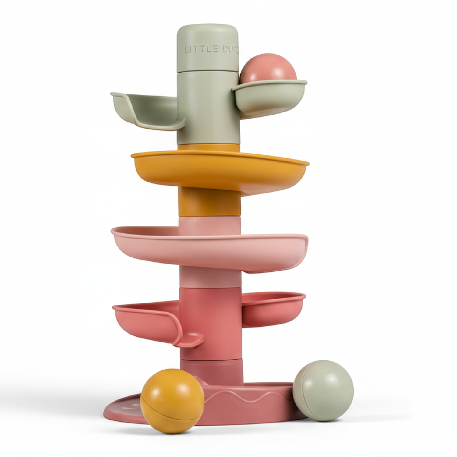 Ten kolorowy zestaw składa się z pięciu subtelnie kolorowych części, które maluch może z łatwością układać jedna na drugiej. Puszczaj kulki pojedynczo z najwyższego poziomu i obserwuj, jak powolutku spadają jedna po drugiej w dół. Kulodrom wyposażony jest w 3 lekkie i łatwe do uchwycenia kulki w różnych kolorach, które podczas poruszania wydają dźwięk. Rozmiar jest odpowiedni dla małych rączek i pomaga rozwijać koordynację wzrokowo-ruchową.