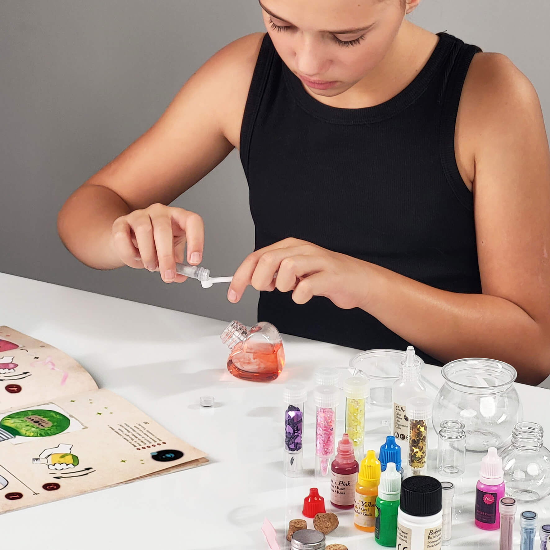 - Ozdabianie buteleczek: Dołączone konfetti, koraliki i inne elementy umożliwiają artystyczne wykończenie każdego eliksiru, co rozwija zdolności manualne i poczucie estetyki.