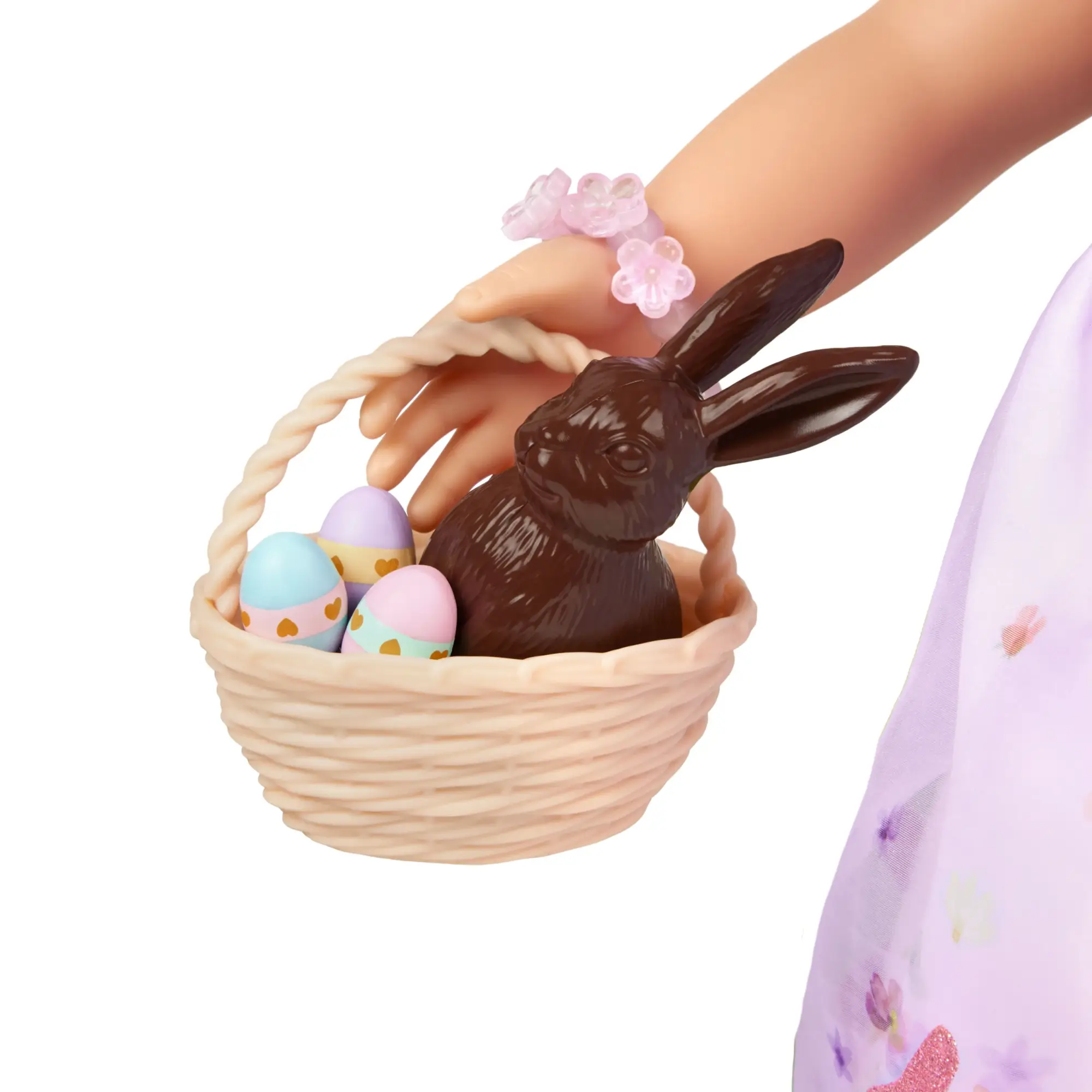 - Komplet akcesoriów: Koszyczek z dekoracyjnymi jajkami i uroczy króliczek pozwalają na tworzenie realistycznych scenek i rozwijanie wyobraźni.