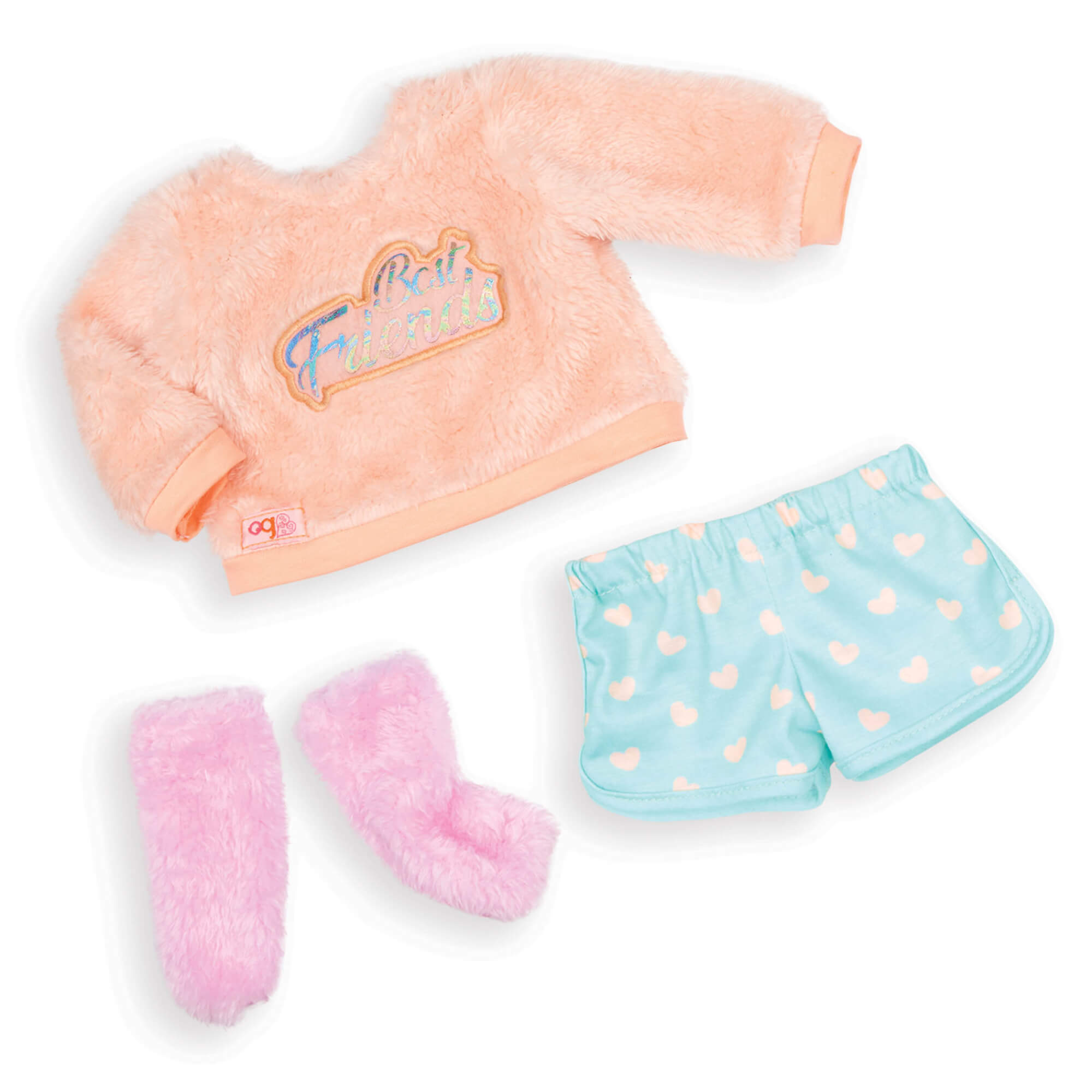 Lumi ubrana jest w uroczy outfit, który doskonale współgra z jej kolorowymi włosami. Pluszowa bluza z holograficznym napisem "Best Friends" oraz spodenki w serduszka dodają jej stylu i zachęcają do wspólnych, modowych zabaw. W zestawie znajdziesz również bieliznę i pluszowe wysokie skarpety, które uzupełniają jej stylizację.