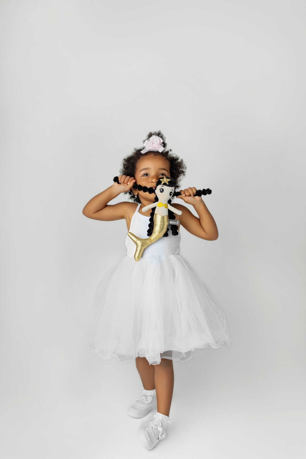 Burza czarnych loków, gwiazda we włosach i błyszcząca płetwa to jej znaki rozpoznawcze. Maskotka jest idealna jako pierwsza laleczka dla małego dziecka. Rewelacyjnie sprawdzi się także jako przytulanka, pomagającą szybko zasnąć. Za chwilę stanie się pierwszą przyjaciółką Twojej córki, idącą z nią przez świat. Pozwoli na zabawę, której jedynym ograniczeniem jest wyobraźnia.