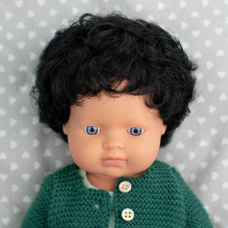 Lalka chłopiec Europejczyk czarne kręcone włosy 38cm Miniland Doll