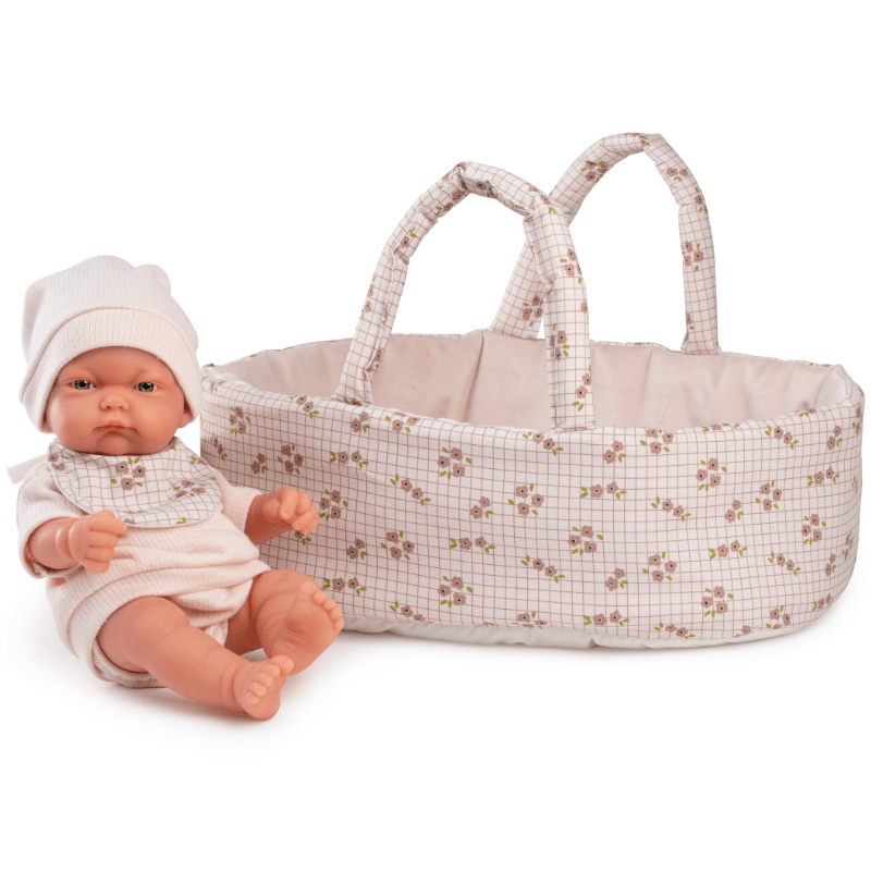 Lalka Pitu prezentuje się niezwykle uroczo w swoim ręcznie szytym stroju, stworzonym w Hiszpanii z myślą o najnowszych trendach dziecięcej mody. Strój wykonany z miękkiej tkaniny w paseczki - składający się z bluzeczki, krótkich spodenek, wzorzystego śliniaczka oraz czapeczki - jest nie tylko stylowy, ale także łatwy do zdejmowania i zakładania. Pozwala to na nieograniczone możliwości przebierania i rozwijania kreatywności u małych projektantek mody. Dodatkowy, miękki nosidełko na lalkę ułatwia transport bobasa i dodaje realizmu zabawie w troskliwą mamę, umożliwiając wygodne noszenie Pitu wszędzie tam, gdzie zawędruje mała opiekunka.