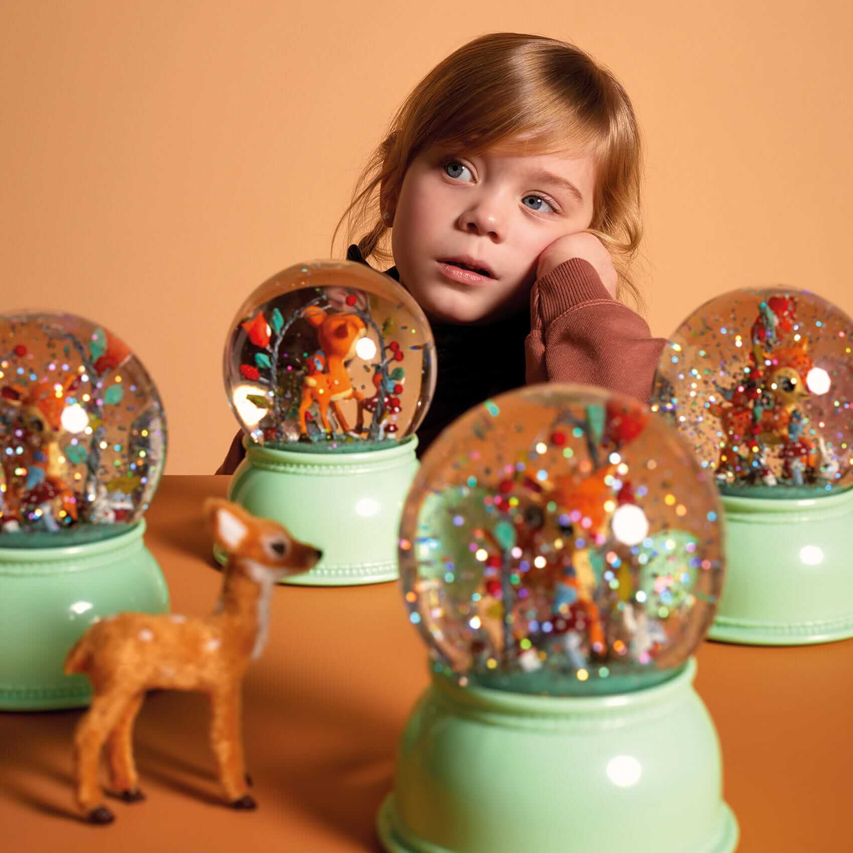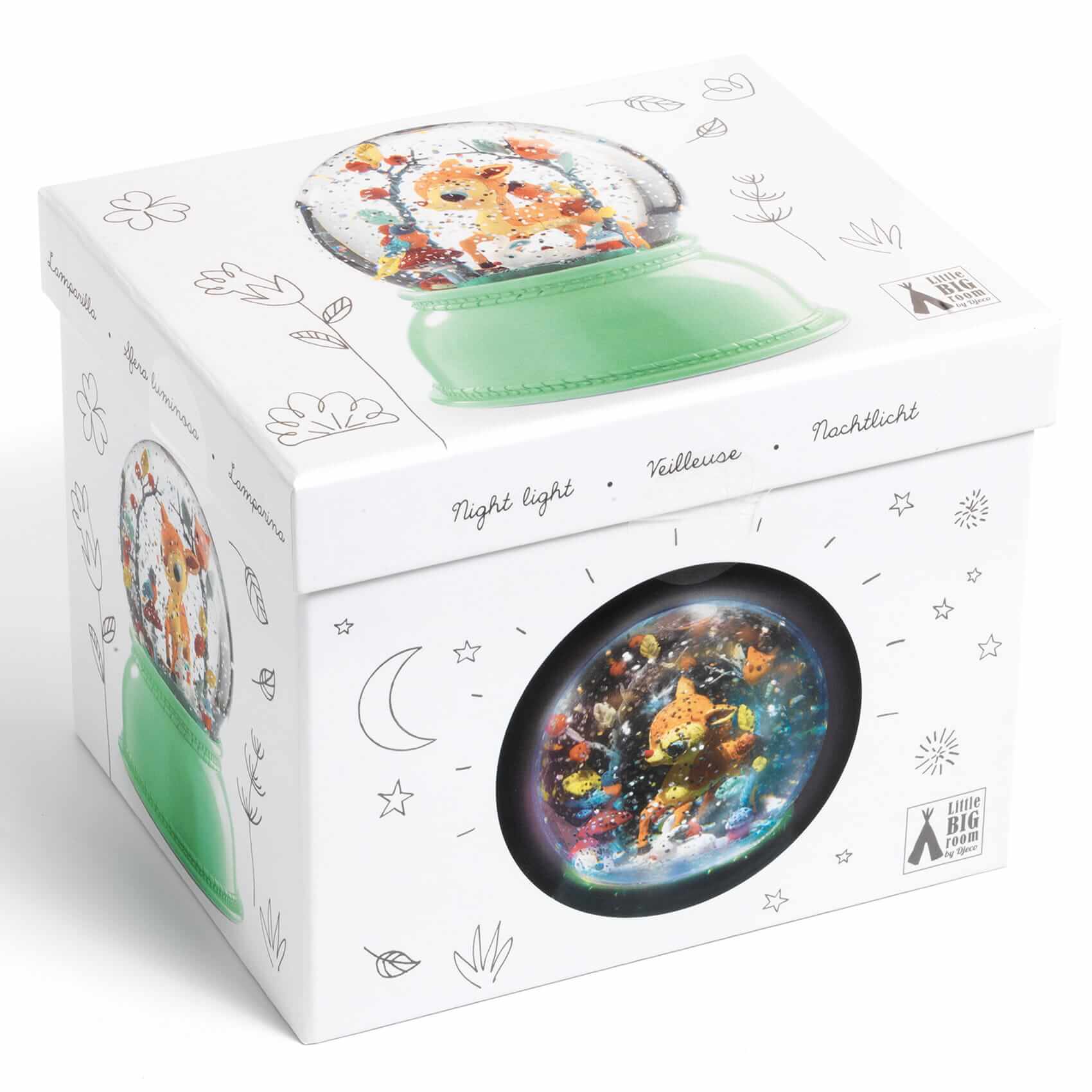 Dekoracyjna lampka nocna Jelonek w formie kuli śnieżnej