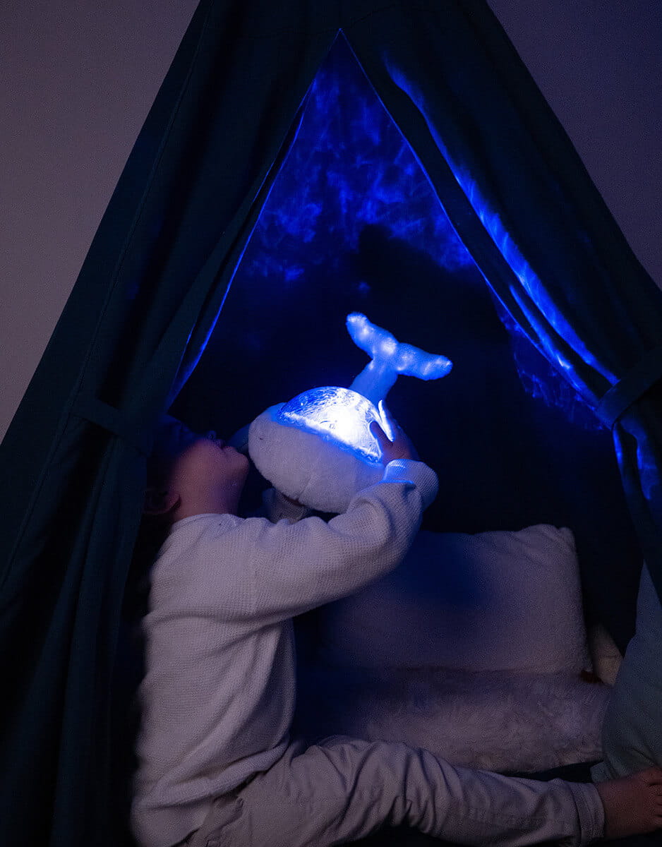 Muzyczne nocne światło Tranquil Whale™ uspokaja niemowlęta i zapewnia poczucie bezpieczeństwa dzieciom bojącym się ciemności. W ciągu dnia jest miękką pluszową maskotką, a nocą zamienia się w lampkę nocną. Ruchoma projekcja w dwóch kolorach tworzy magiczny efekt polarnego światła. Melodie i białe szumy uspokoją maluchy, pomagając im przenieść się do krainy snów.