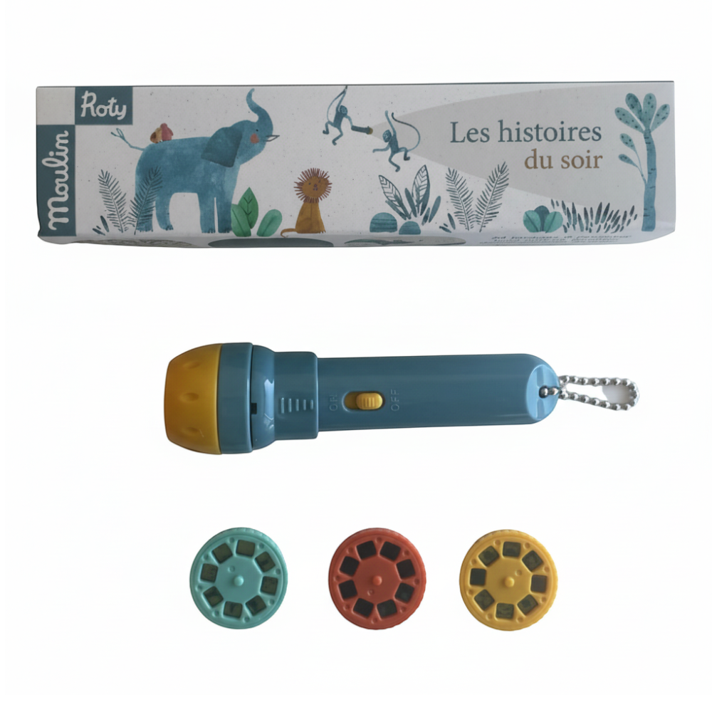 Zanurz się w trzech różnych światach dzięki flagowemu produktowi Moulin Roty. Odkryj trzy ponadczasowe i klasyczne opowieści. Mała latarka projektor, do której wkładamy 3 różne filmiki, z których każdy opowiada inną historię. Do projekcji na ścianie lub suficie.