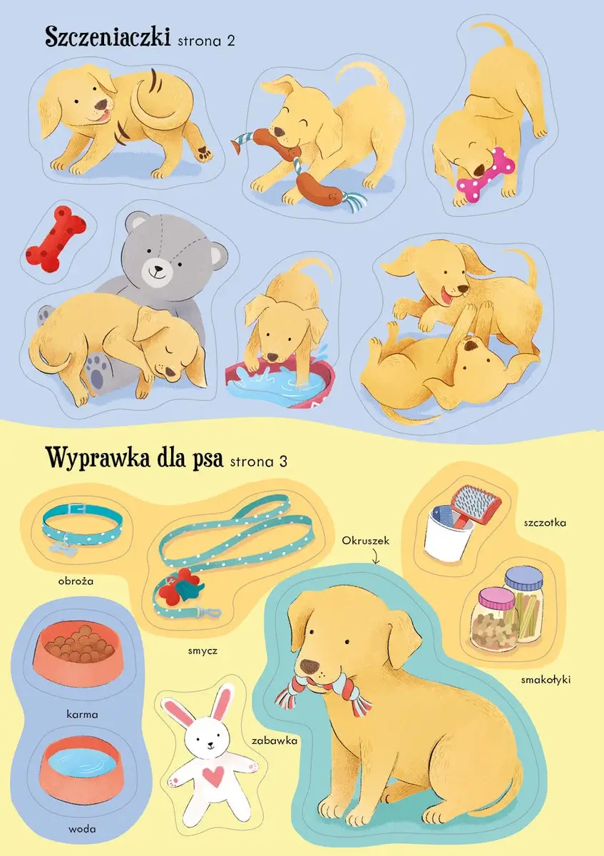 W każdej książce dziecko znajdzie mnóstwo naklejek – aż osiem stron! Naklejkami można bawić się na dwa sposoby, wyklejając ilustracje według własnego uznania lub przyklejając je zgodnie ze wskazówkami zamieszczonymi w książce. To proste ćwiczenie i świetna zabawa rozwijająca wyobraźnię.