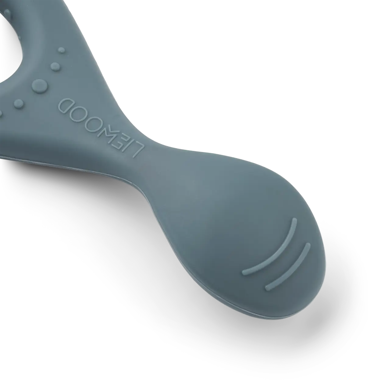 Małe oznaczenia na samej łyżce dają dziecku poczucie, jak głęboko łyżka wejdzie do buzi.