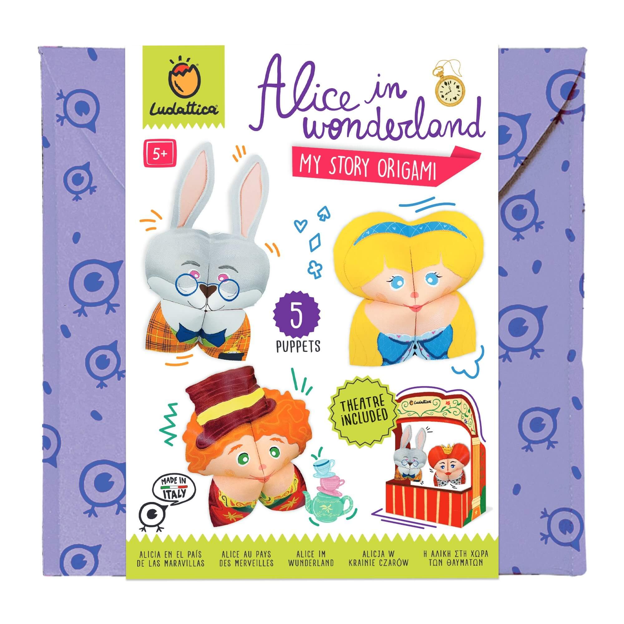- kwadratowe, pięknie barwione arkusze do składania – powstaną z nich postacie bohaterów w formie pacynek – wystarczy włożyć palce, by postać ożyła
