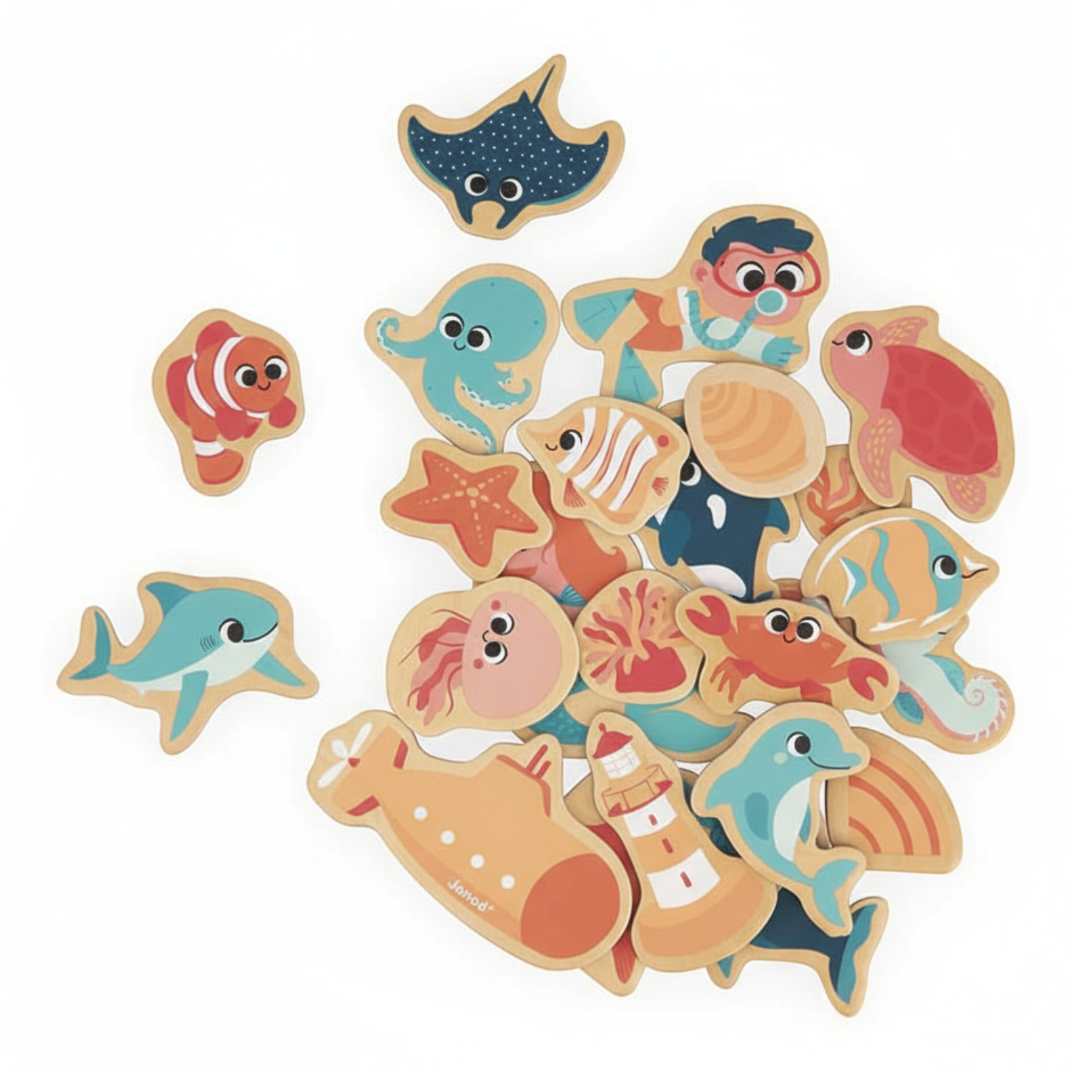Zestaw drewnianych magnesów Podwodny świat francuskiej marki Janod to wspaniały prezent dla kilkulatka