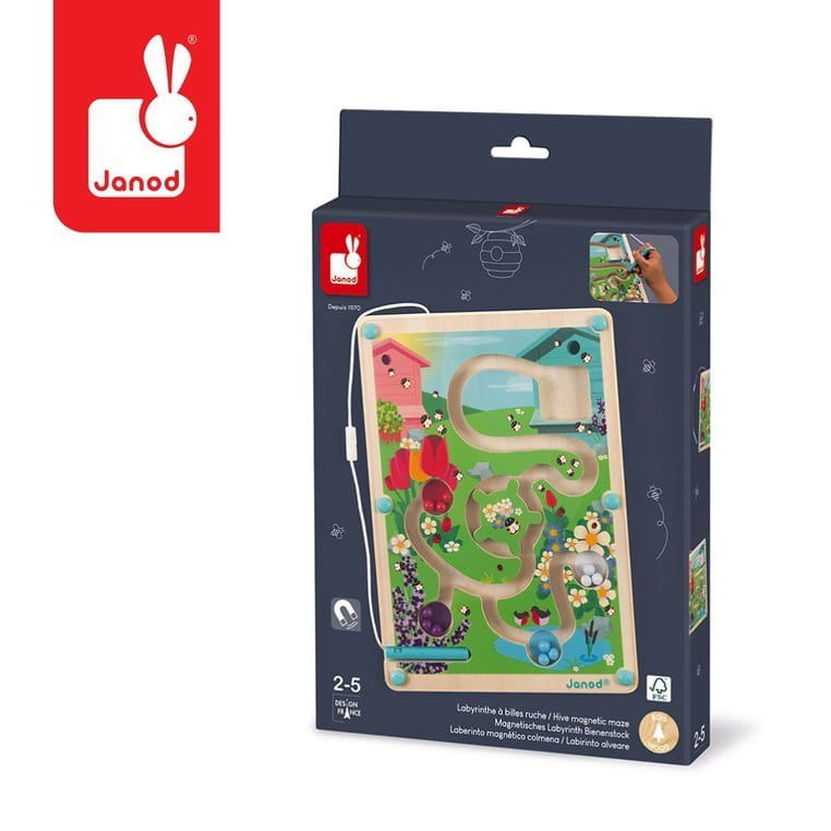 Zabawka jest pięknie wykonana, co dodatkowo zachęca dziecko do podjęcia wyzwania. To także świetny sposób na zapoznanie dziecka ze zwyczajami i rolą pszczół w przyrodzie. Labirynt został zaprojektowany we Francji. Zapakowany jest w estetyczne, kartonowe pudełko. Idealnie nadaje się na prezent.