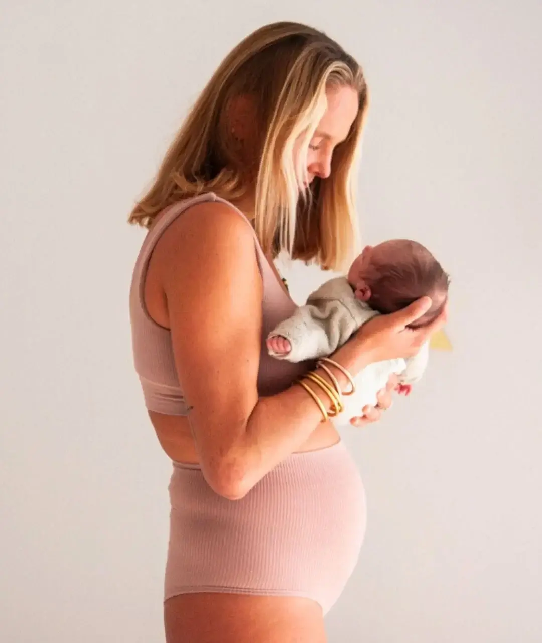 Dzięki wysokiej elastyczności materiał rozciąga się i dopasowuje do zmian Twojego ciała, co pozwala nosić je zarówno w trakcie ciąży, jak i po niej.