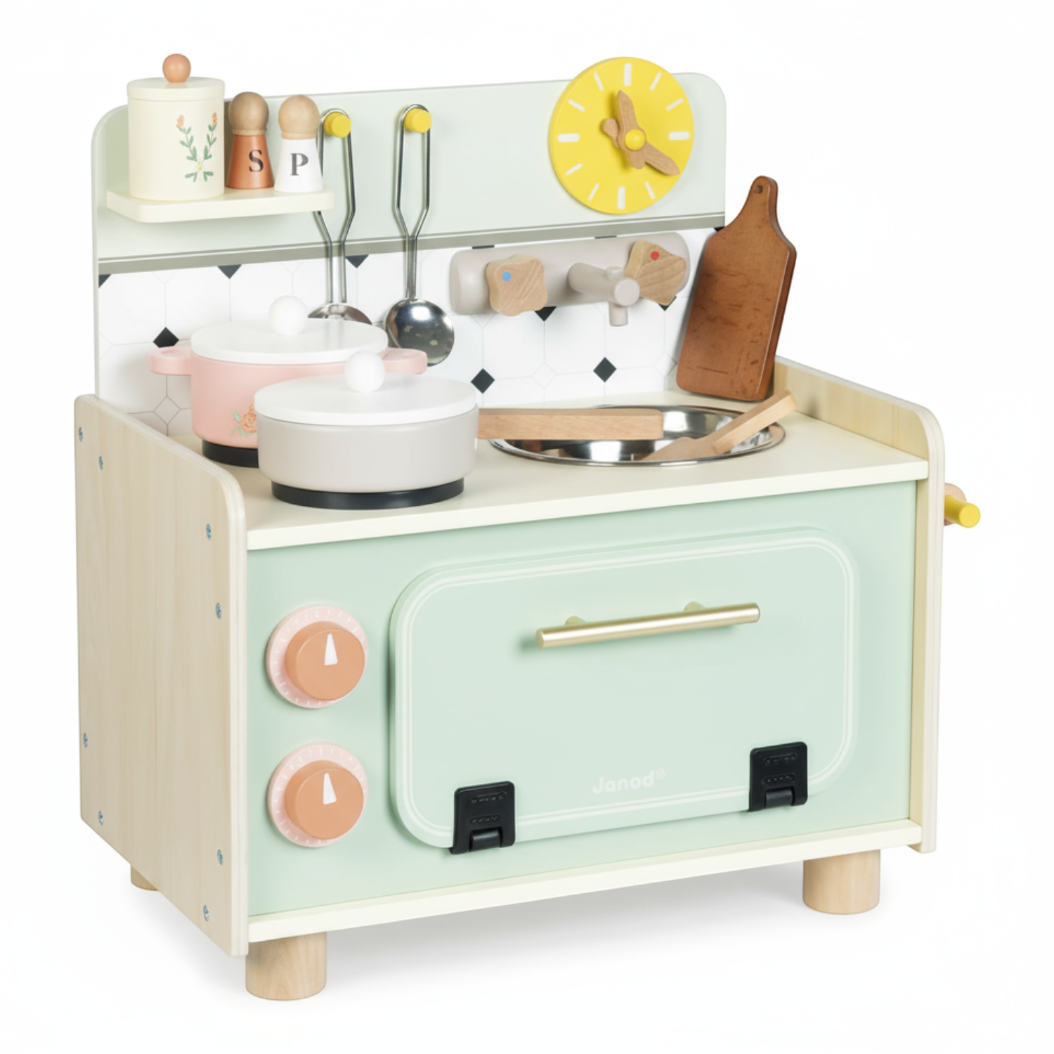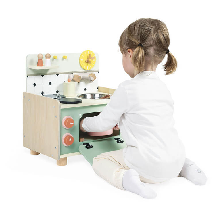 Mała drewniana kuchnia z kolekcji Shiny Grandma francuskiej marki JANOD sprawi mnóstwo radości każdemu dziecku