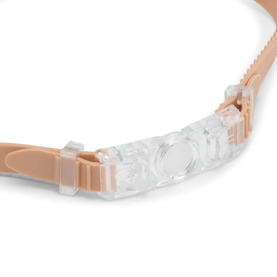 Regulowany dwuczęściowy pasek na głowę z prostą regulacją na potylicy, gdzie naciśnięcie przycisku umożliwia zaciśnięcie lub poluzowanie paska dobrze się sprawdza.