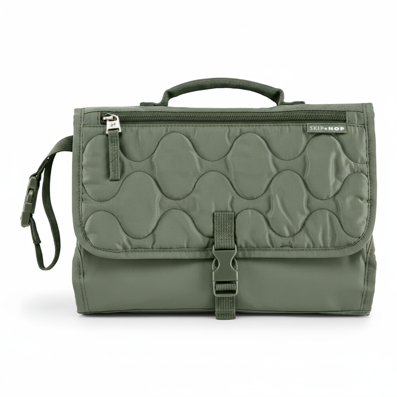 Dzięki przemyślanej konstrukcji, łatwo rozłożysz go jedną ręką, mając drugą wolną do zajęcia się dzieckiem. Ultra-wygodna saszetka zawiera łatwą do czyszczenia, odpinaną matę do przewijania oraz przezroczyste etui na mokre chusteczki, co pozwala szybko uzupełniać zapasy. Duża siateczkowa kieszeń pomieści do czterech pieluch, kremy i inne niezbędne akcesoria, a przednia kieszeń zapinana na suwak jest idealna na klucze, telefon i inne drobne przedmioty osobiste. Zabierz przewijak podróżny Pronto w każdą podróż — wrzuć do torby, przypnij do nadgarstka lub zaczep o wózek i ciesz się wygodą!