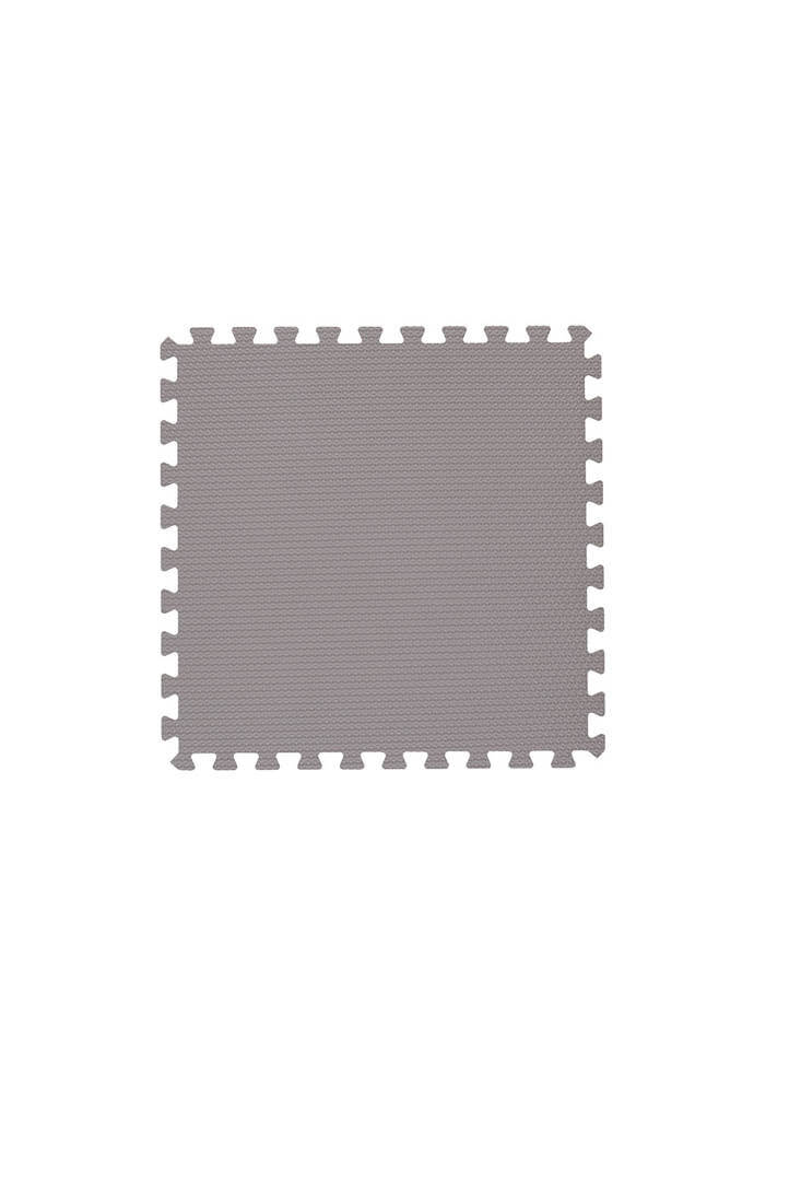 Mata składa się z 9 kwadratowych płytek o grubości 1,2 cm. Dzięki ząbkowanym bokom, łączą się one ze sobą jak puzzle. Jedna zmontowana mata ma wymiary 131x131cm, ale możliwości jej rozbudowy są praktycznie nieograniczone – wystarczy połączyć więcej zestawów razem, aby znaleźć optymalną wielkość maty. W zestawie znajduje się również 14 wykończeniowych obrzeży do stworzenia jednolitej ramy „dywanu”.