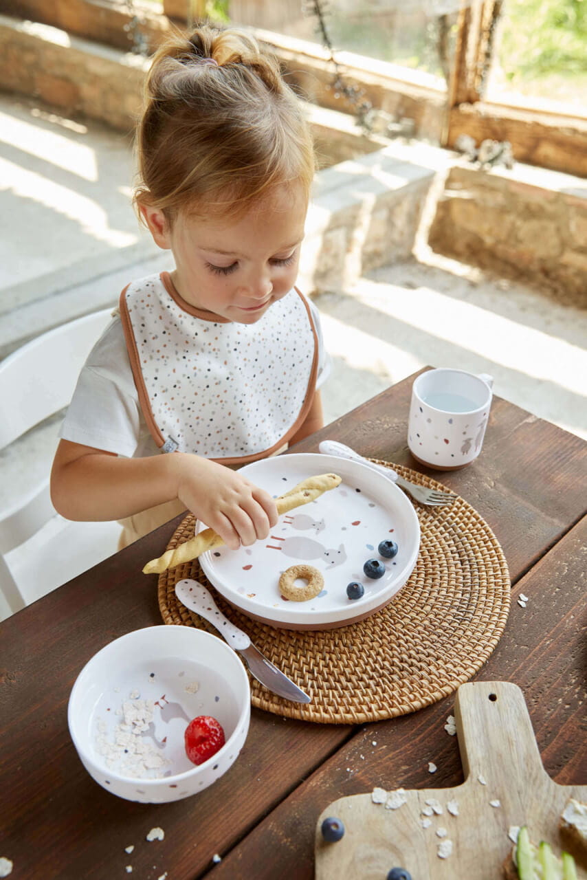Te praktyczne śliniaczki z kolekcji LÄSSIG Tiny Farmer pozwalają małym smakoszom na swobodne rozlewanie jedzenia za każdym razem, gdy siadają do stołu