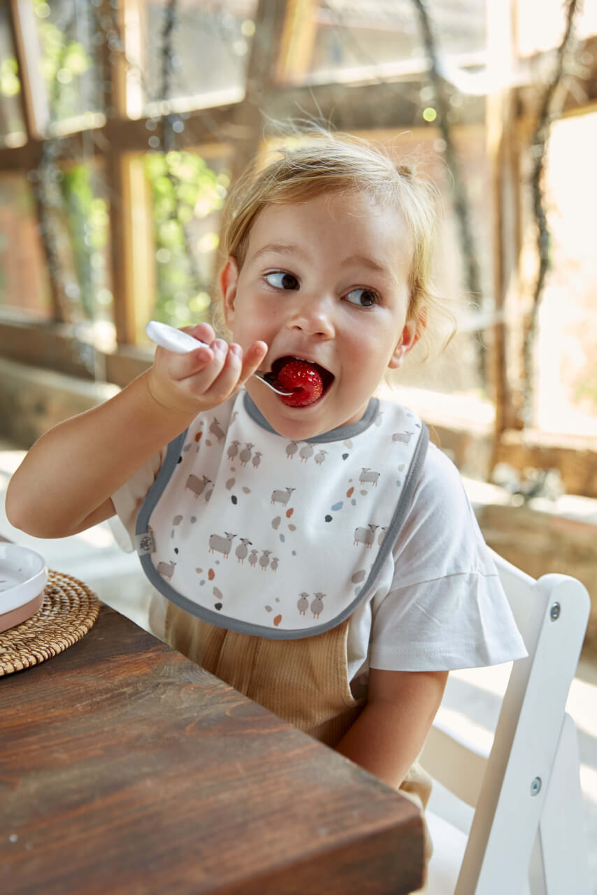 Te praktyczne śliniaczki z kolekcji LÄSSIG Tiny Farmer pozwalają małym smakoszom na swobodne rozlewanie jedzenia za każdym razem, gdy siadają do stołu