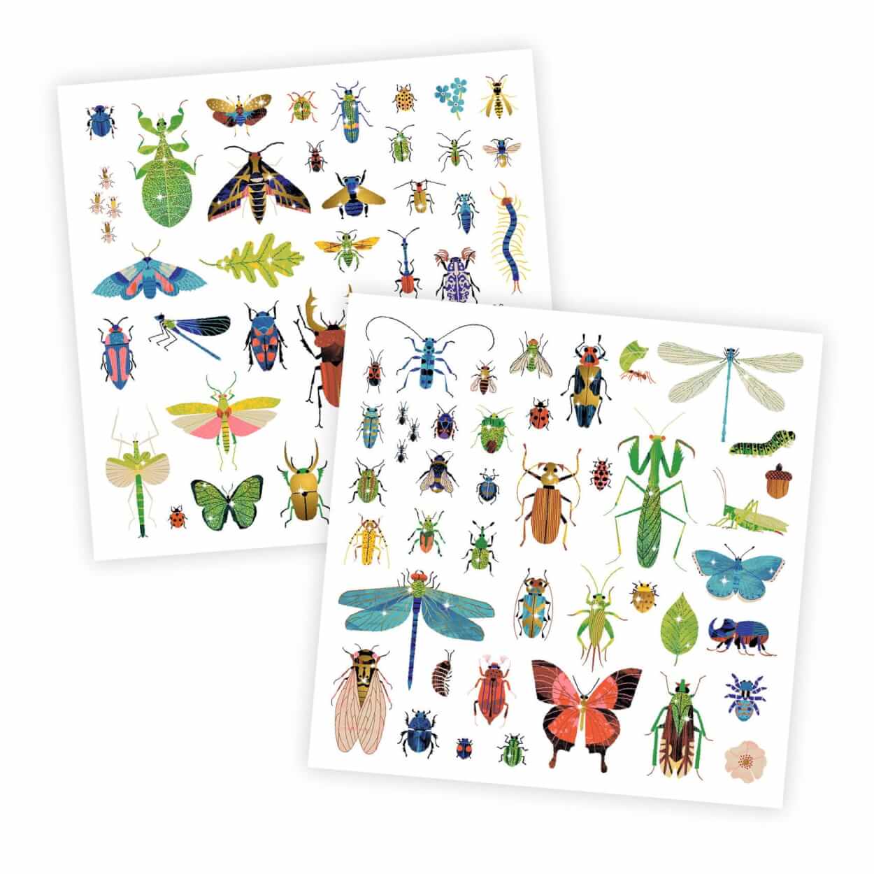 Zestaw 160 metalicznych naklejek o tematyce mikrokosmosu: motyle, koniki polne, owady...