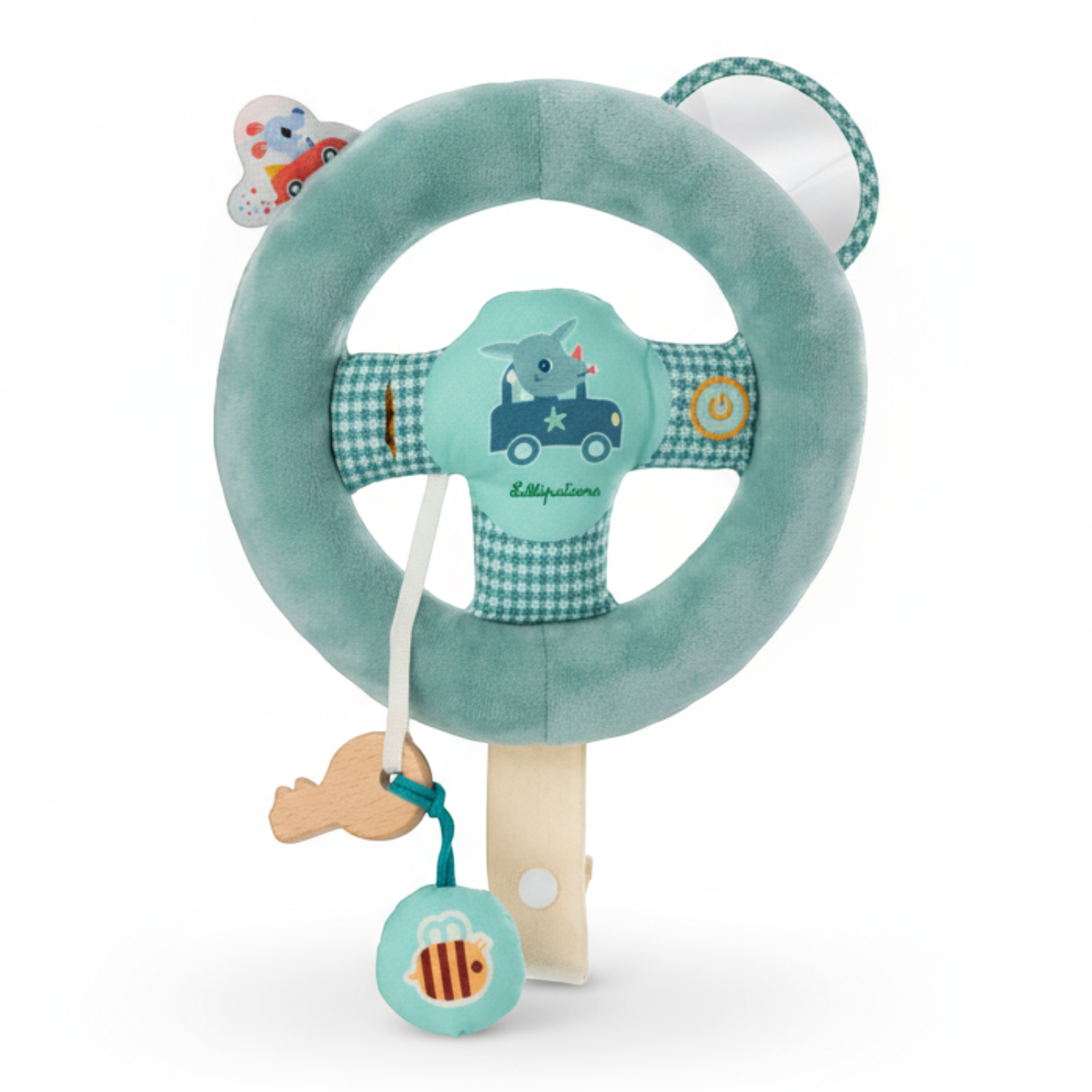Zabawka idealnie sprawdzi się np. podczas podróży czy długiego spaceru, ponadto posiada pasek z guziczkiem pozwalający zamocować ją w dowolnym miejscu. Przyjemna w dotyku pluszowa kierownica oferuje wiele opcji, m.in.: wydaje dźwięk silnika, drewniany kluczyk na sznureczku z breloczkiem-piszczałką, otwór „stacyjkę”, w której ten można kluczyk umieścić, bezpieczne i miękkie boczne lusterko oraz odstającą naszywkę z myszką jadącą samochodem. Zabawka jest solidnie wykonana i w pełni bezpieczna. Zaskakuje i pobudza dziecięcą wyobraźnię. Rozwija koordynację ręka-oko, małą motorykę (chwytanie, wkładanie, wyjmowanie, obracanie, naciskanie), aktywizuje zmysł słuchu (dźwięki), dotyku (różne materiały i faktury, odstające elementy) i wzroku (lusterko).