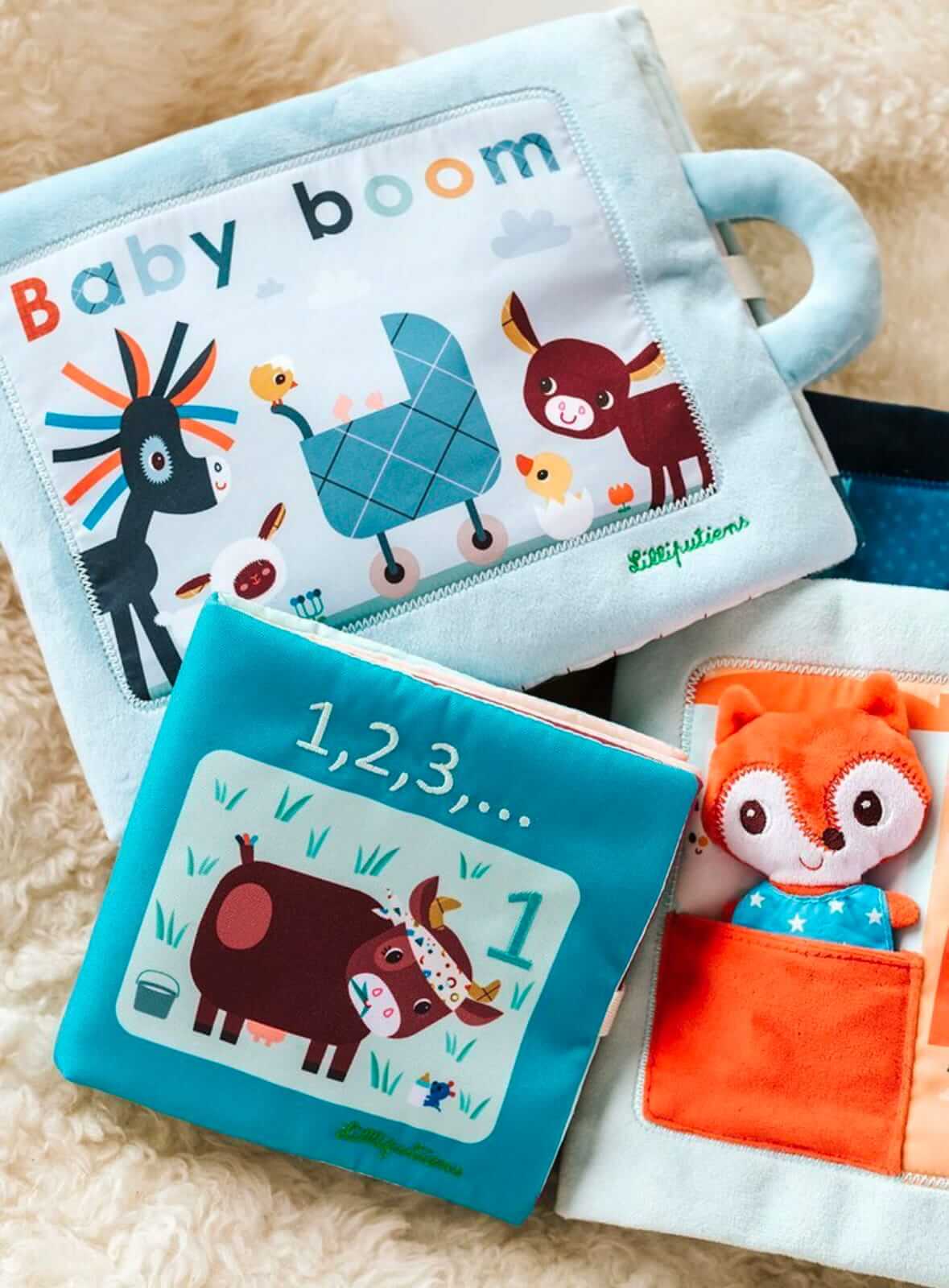 Mięciutka, materiałowa książeczka do nauki liczenia belgijskiej marki Lilliputiens to idealna propozycja rozpoczynająca przygodę malucha z rozpoznawaniem cyfr