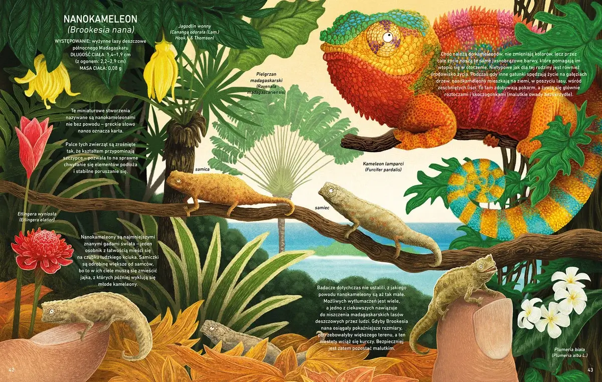 Zachwycające kolorystyką i precyzją ilustracje przeniosą czytelnika do najodleglejszych zakątków świata, w których będzie mógł podglądać małe, mniejsze i najmniejsze stworzenia.