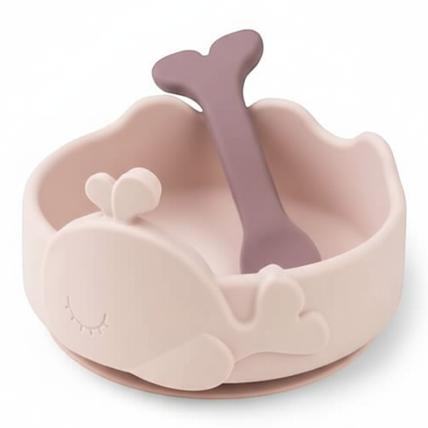 Silikonowa miseczka z przyssawką i łyżeczka zaprojektowane z myślą o małych dziecięcych rączkach, doskonale sprawdzi się w trakcie rozszerzania diety malucha