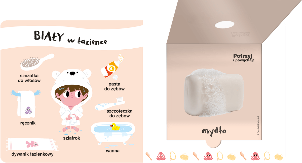 Na końcu książki znajduje się rozkładówka ze wszystkimi zapachami, które maluch poznał na wcześniejszych stronach. Jest tam też kilka pytań od autora, które sprawdzają zdobytą wiedzę.