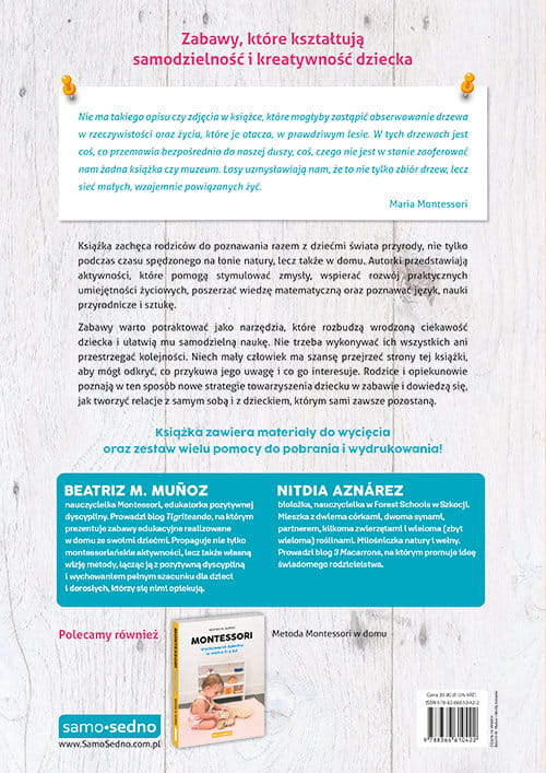Zgodnie z filozofią Marii Montessori wszystkie zabawy przedstawione w tej książce są związane z podstawowymi potrzebami i zainteresowaniami dzieci oraz wykorzystują fazy wrażliwe w ich rozwoju, gdy uczą się one nowych umiejętności wyjątkowo łatwo i szybko.