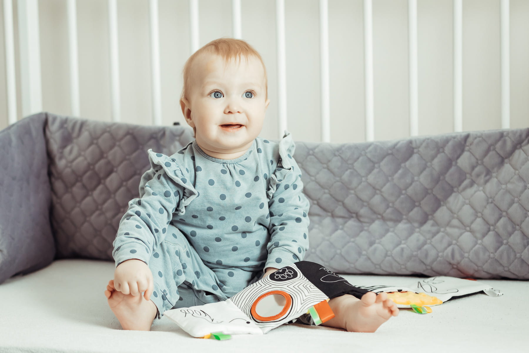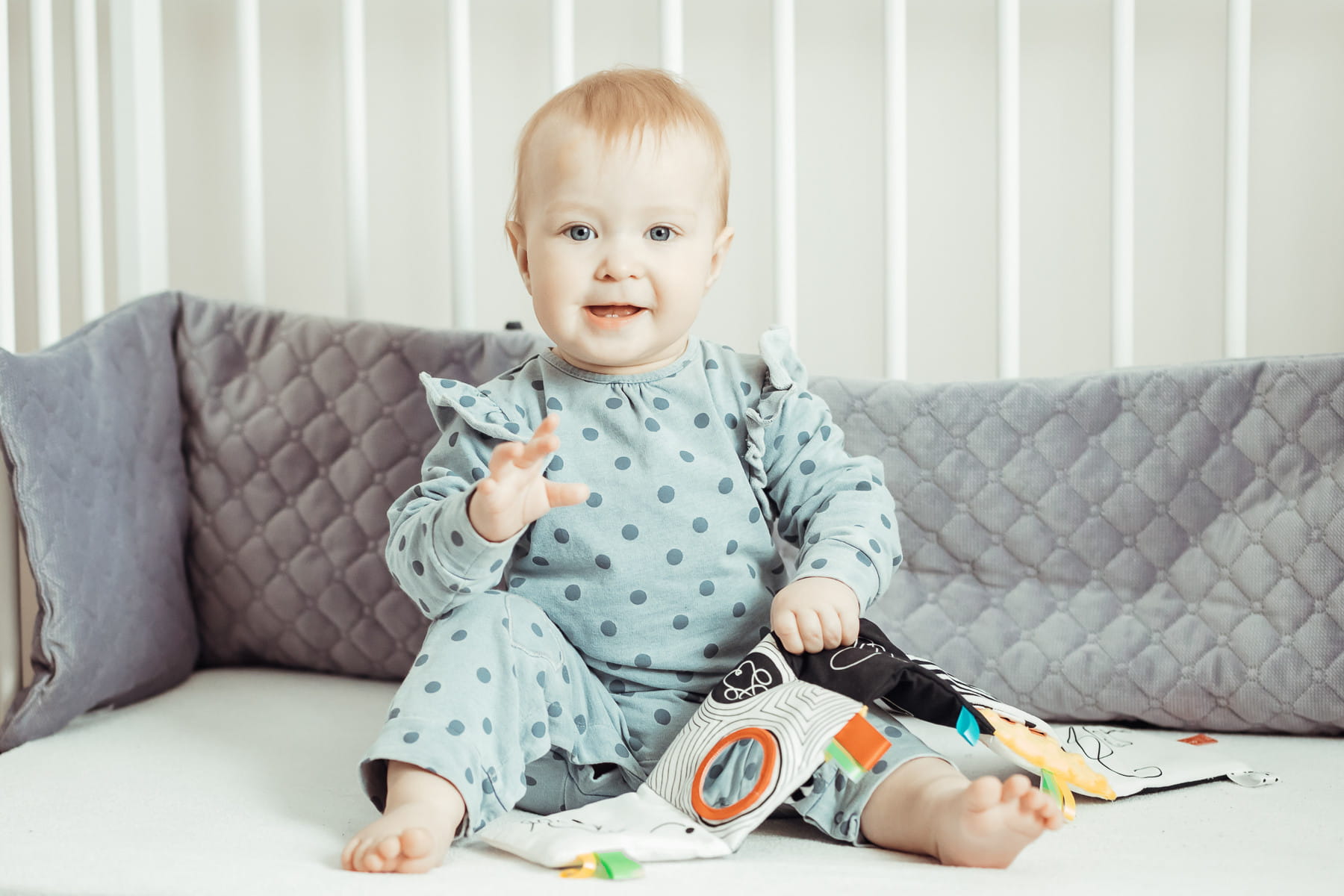 Mięciutka, materiałowa książeczka sensoryczna, stworzona z myślą o najmłodszych