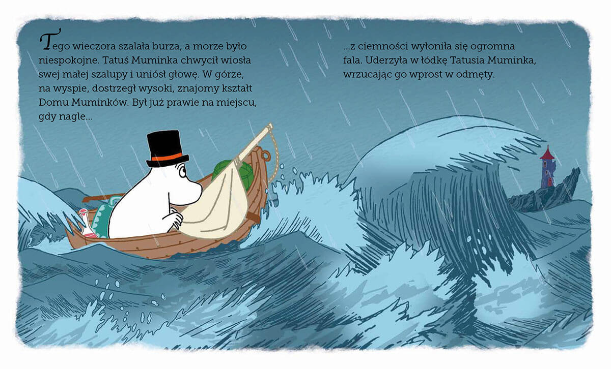 Ta przepiękna, ciepła i pełna optymizmu historia to nowa interpretacja pierwszego i jednego z najbardziej znanych muminkowych opowiadań Tove Jansson. Napisana na nowo prostym językiem będzie zrozumiała dla najmłodszych dzieci. Może stanowić dla nich zarówno ciekawą historię, jak i mądrą przypowieść o tym, że nawet najgorsze wydarzenia są w stanie nieść ze sobą pozytywne zmiany. Starsi czytelnicy odnajdą tu niezwykły, bezpieczny klimat świata Tove Jansson, który znają z własnego dzieciństwa, i docenią ujmujące, przygotowane na podstawie oryginalnych grafik autorki ilustracje. Ta piękna książka będzie idealną lekturą dla całej rodziny i punktem wyjścia do fascynujących rozmów z najmłodszymi.