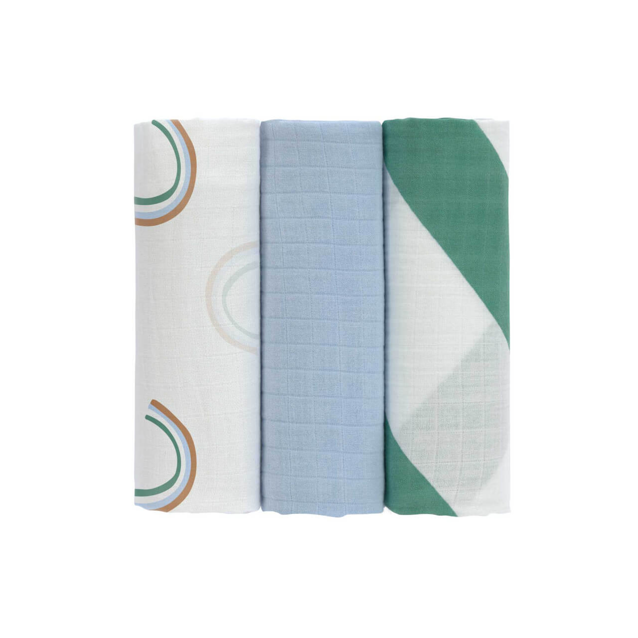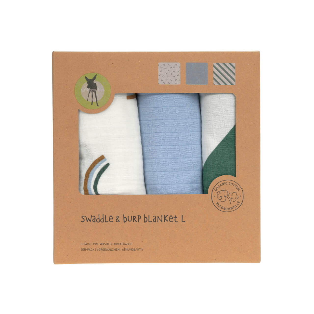 Komplet trzech wielofunkcyjnych bawełnianych otulaczy z kolekcji Happy Rascals niemieckiej marki Lassig