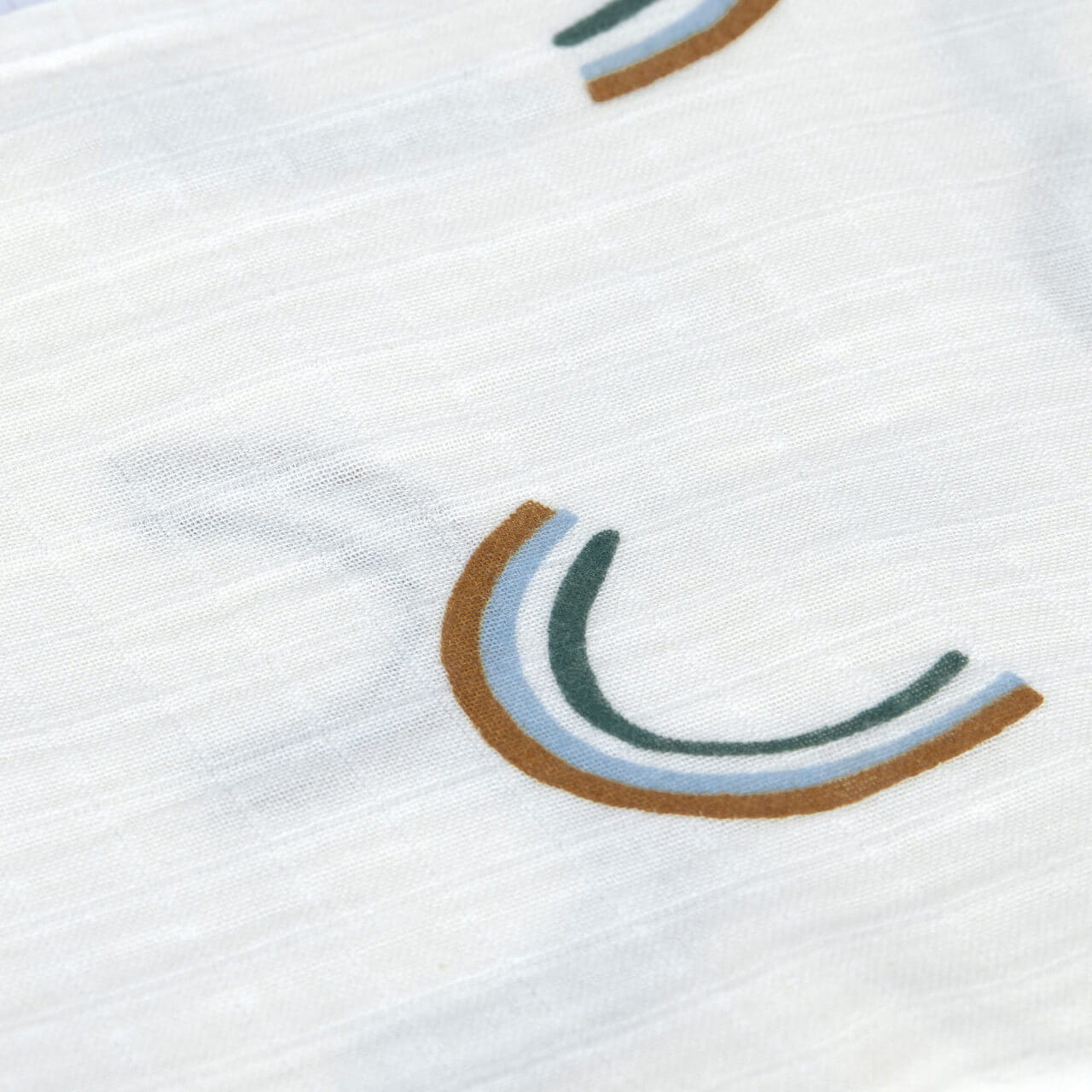 Bawełna muślinowa to jedna z najdelikatniejszych tkanin na świecie, bezpieczna dla skóry niemowląt. Muślin jest oddychający, a jego otwarty splot i lekkość zmniejszają ryzyko przegrzania dziecka, zapewniając jednocześnie komfort. Dodatkowo jest bardzo trwały i ultramiękki.