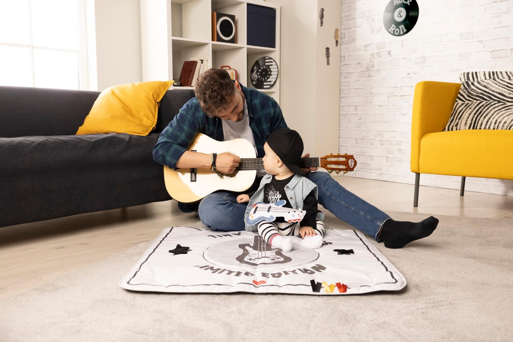 Muzyczna gitara/pozytywka z kolekcji Tiny Rockers to niezwykle wciągająca zabawka, która została zaprojektowana tak, aby rosnąć wraz z dzieckiem