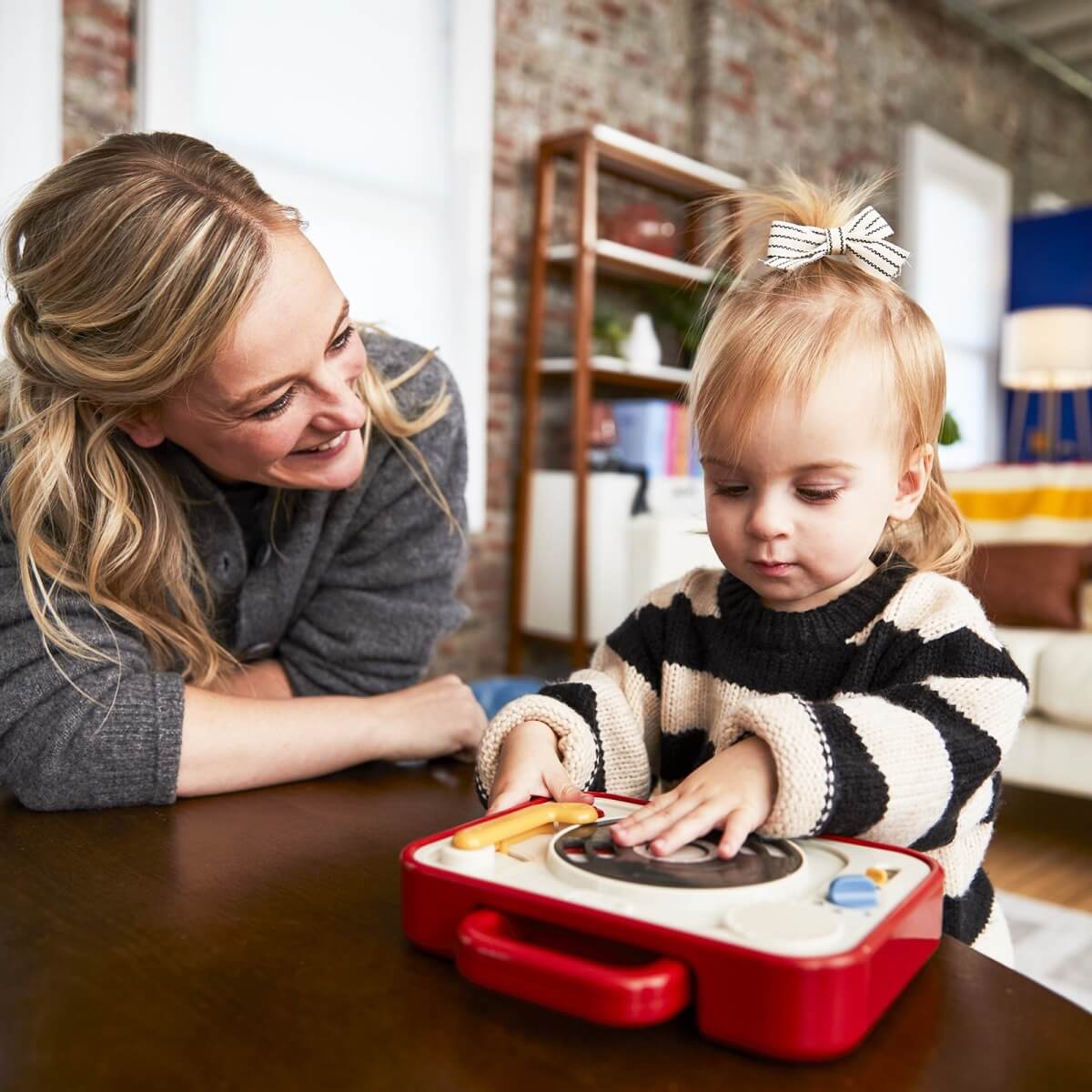 Przesuwanie igły, kręcenie płytą oraz regulacja suwaka tonacji rozwijają motorykę małą, angażując dziecko w precyzyjne ruchy rąk i poprawiając koordynację ręka-oko. - Kojarzenie