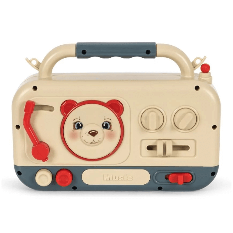 To interaktywna zabawka sensoryczna, która wspiera rozwój malucha od 12. miesiąca życia. Przyciski, pokrętła i efekty dźwiękowe zachęcają do aktywnej zabawy, rozwijając motorykę małą, koordynację ręka–oko oraz naukę zależności przyczyna–skutek. Lekka, poręczna konstrukcja sprawia, że radio świetnie sprawdzi się w domu i w podróży. Wykonane z bezpiecznych materiałów, posiada certyfikat CE.