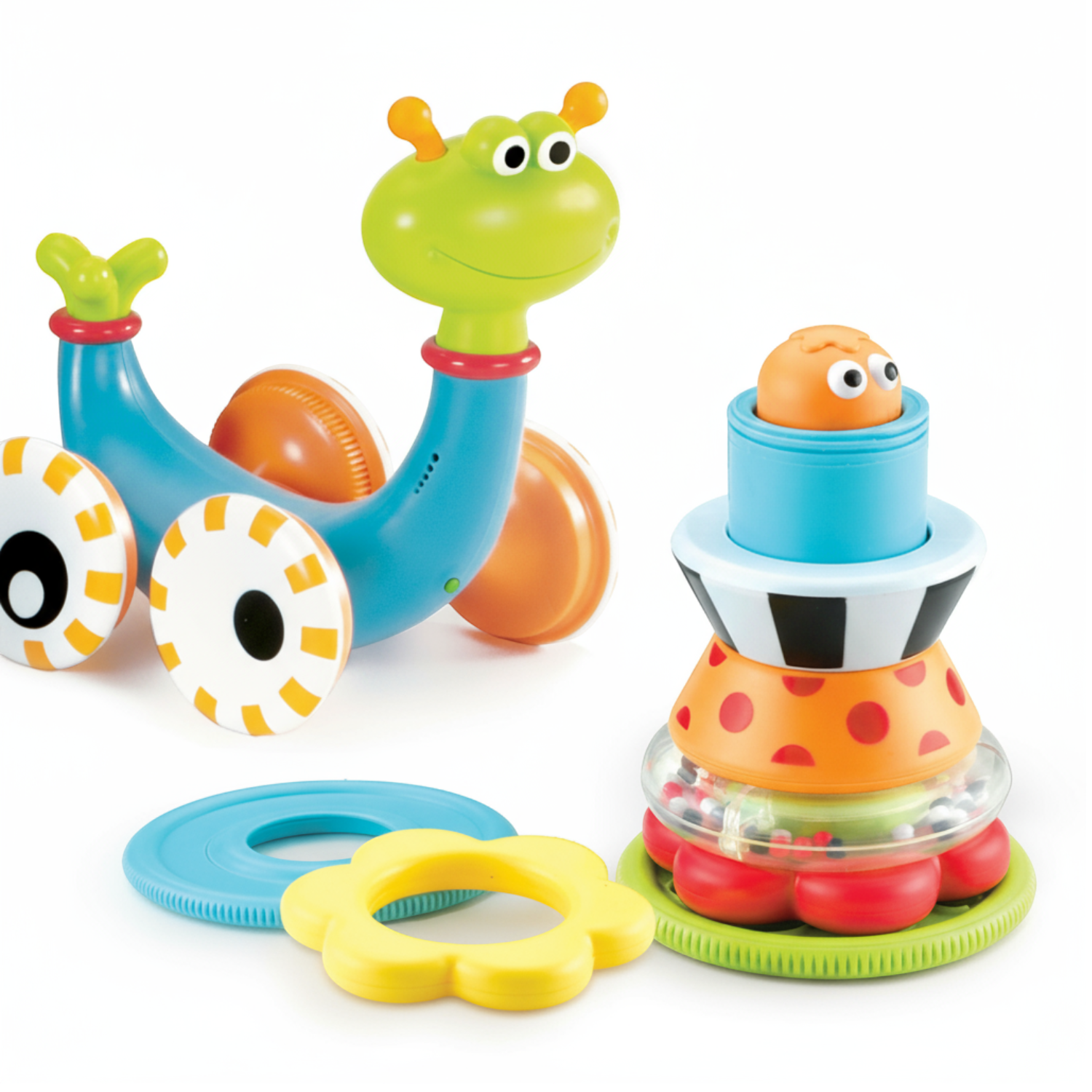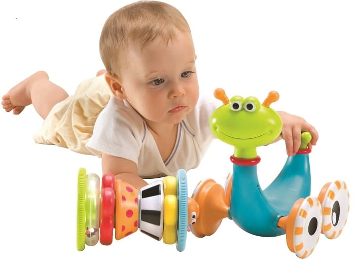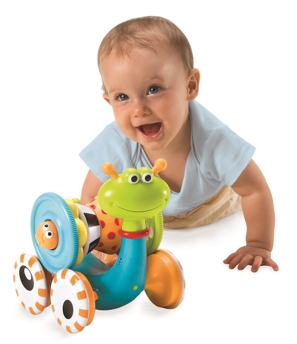 Muzyczny Ślimak to bardzo pomysłowa zabawka, stymulująca do odkrywczej zabawy oraz nauki raczkowania